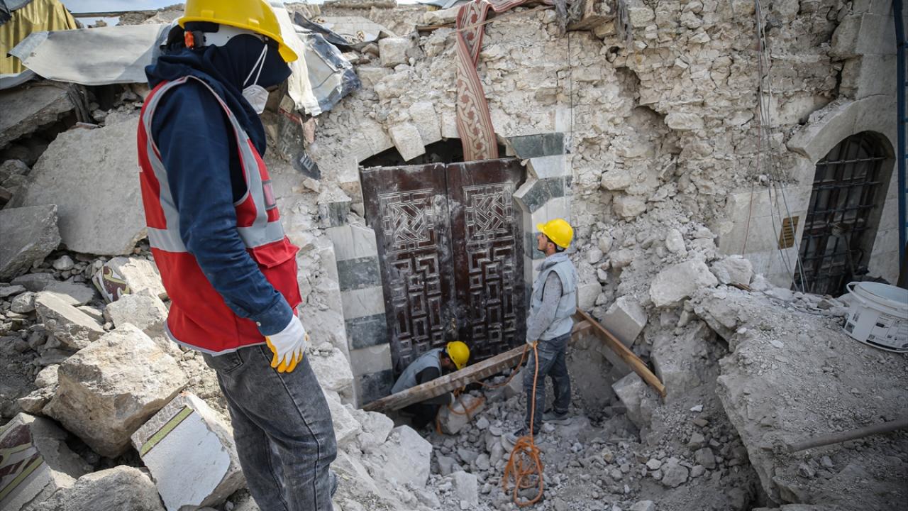 Ekipler, hoşgörü, kardeşlik ve huzurun sembolü olan caminin nitelikli eserlerini moloz yığınına dönüşen alandan kurtarmaya çalışıyor.