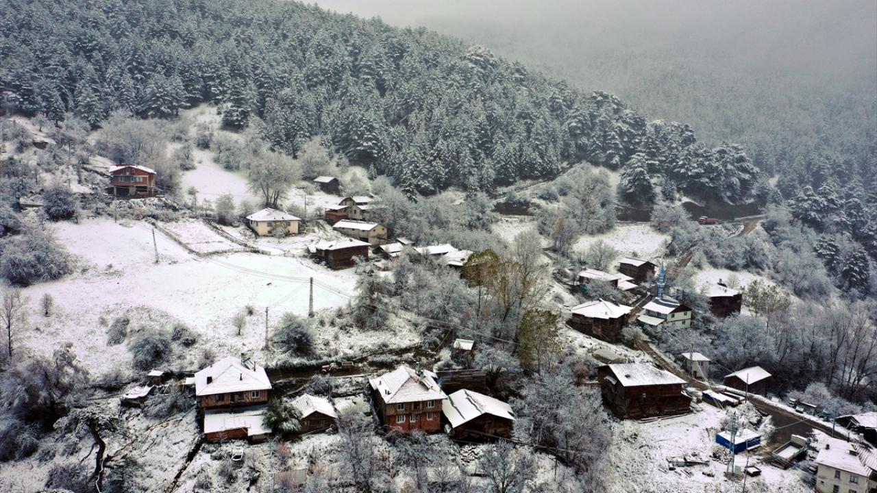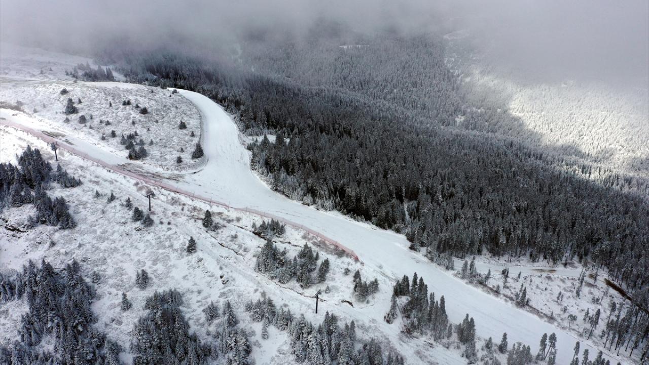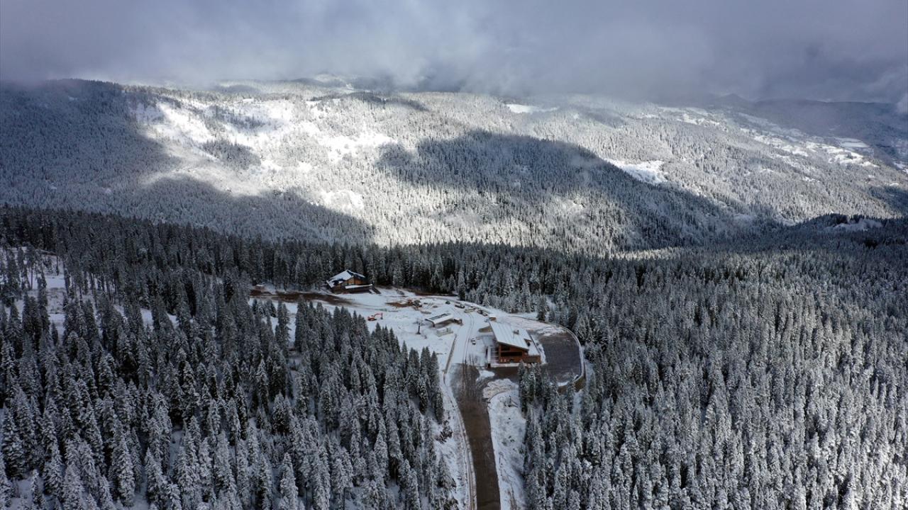 Ilgaz Dağı`nın eteklerinde sonbahar renkleri hakimken, yükseklerde ise kar yağışı etkili oluyor.