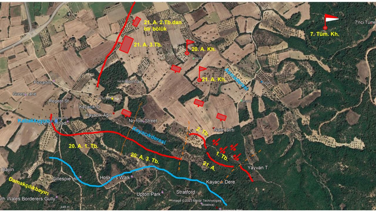 Anafartalar Grup Komutanı olarak atanan Albay Mustafa Kemal Atatürk, kendisine bağlı olan birliklerden Ocaklı ve Güneyli arasında tertiplenmiş olan 7 Tümen bağlısı 20 ve 21’inci Alaylar Anafartalar Ovasındaki Türk savunmasına destek bölgeye intikale başladı.