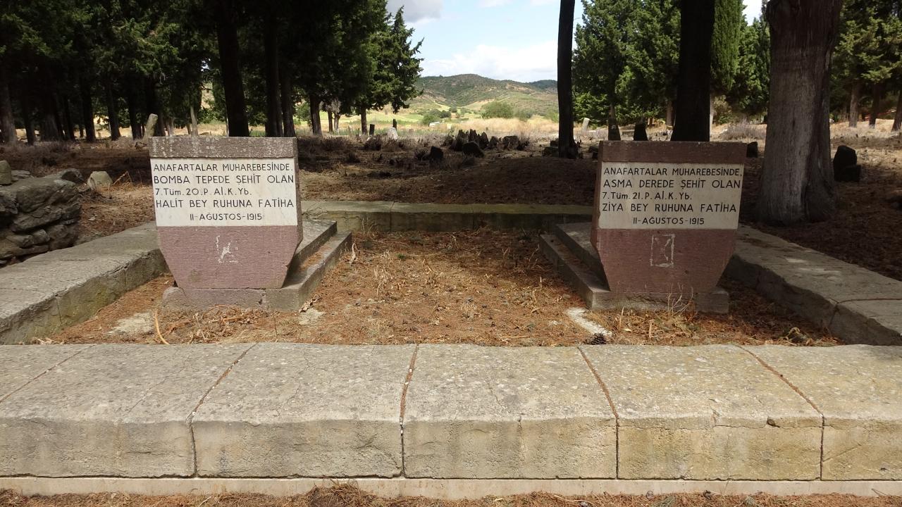 “7’nci Tümen bağlısı 20 ve 21’inci Alay Komutanları 9 Ağustos günü öğleden sonra şehit olmuşlardı. Özellikle bulunmuş olduğumuz yerdeki iki şehit Alay Komutanı Anafartalar Muharebesi öncesinde Bolayır mevkiindeki bir karargah noktasından yürüyüşe başlamışlar ve 50 kilometre bir yürüyüş sonrasında Anafartalar Ovasına ulaştılar. 9 Ağustos günü gerçekleşen Anafartalar Muharebesi esnasında şehit olan bu iki Alay Komutanı şehit olduğunda şehit oldukları noktadan Anafarta köy mezarlığının da geçmiş olduğu bir intikal yolundan burası özellikle sıhhiyenin şehitlerimizi taşımış olduğu yoldur. Bu yol içerisinden taşınmak suretiyle Büyükanafarta köyündeki şehitliğe definleri yapılmıştır.”