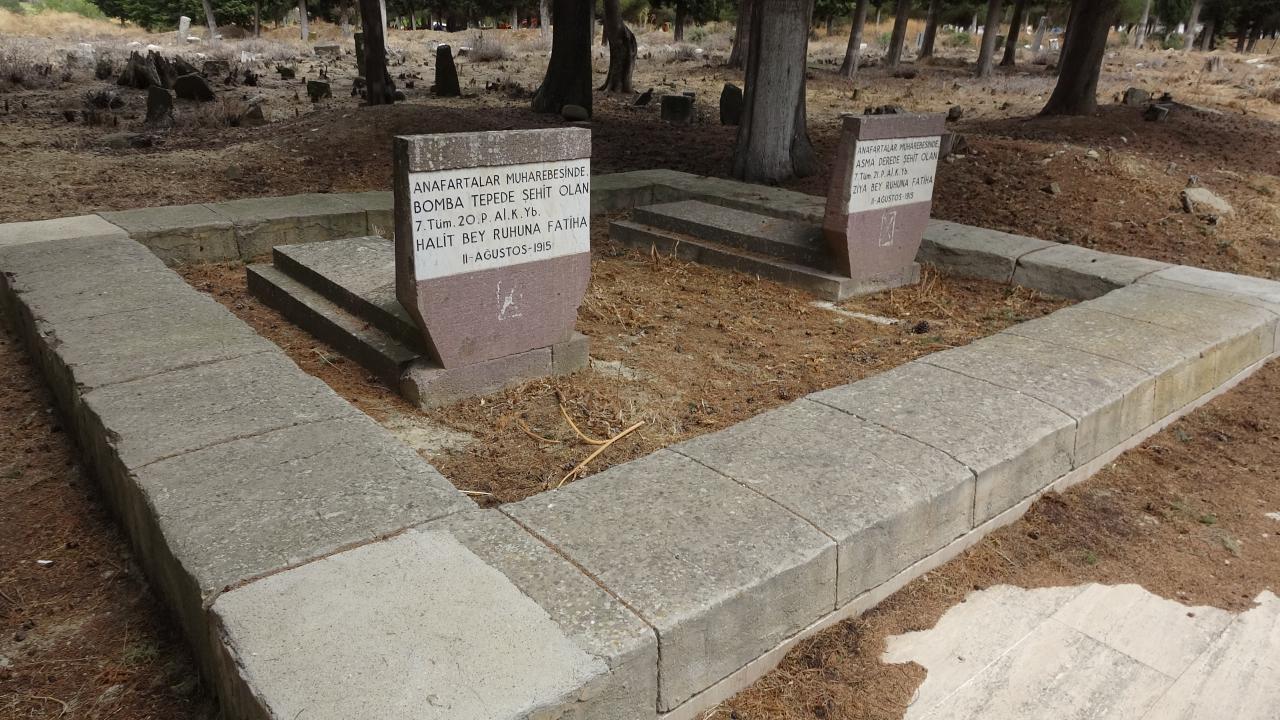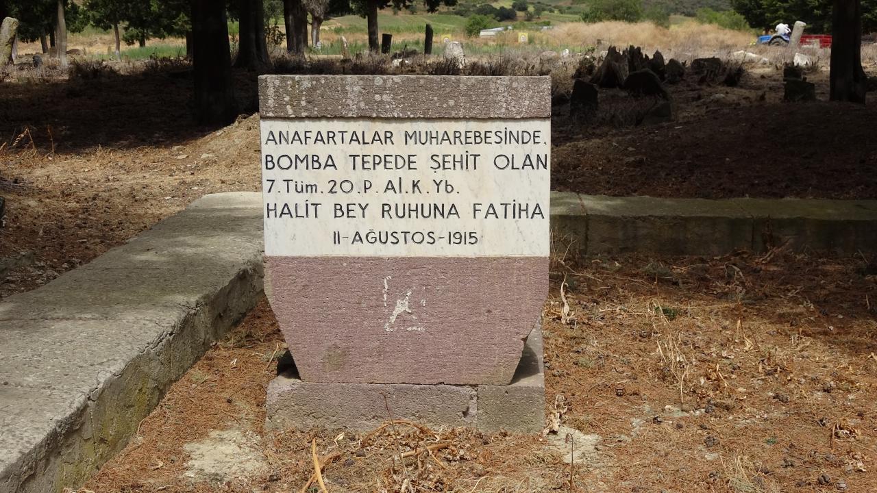Dün ölüm yıldönümü olan Yarbay Halit Bey’in mezarı Büyükanafarta köyünde bulunuyor.