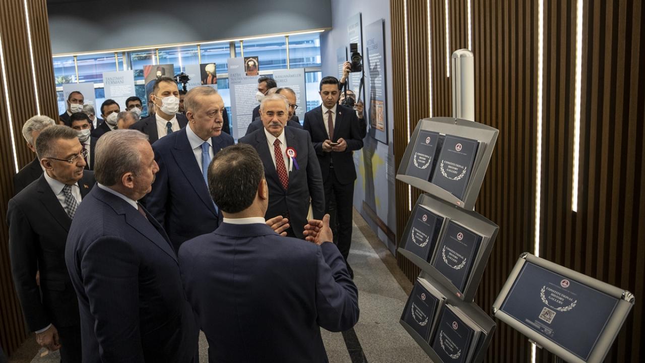 Cumhurbaşkanı Recep Tayyip Erdoğan, Anayasa Mahkemesinin (AYM) 60. Kuruluş Yıl Dönümü Töreni kapsamında düzenlenen Anayasa Tarihi Galerisinin açılışına katıldı.