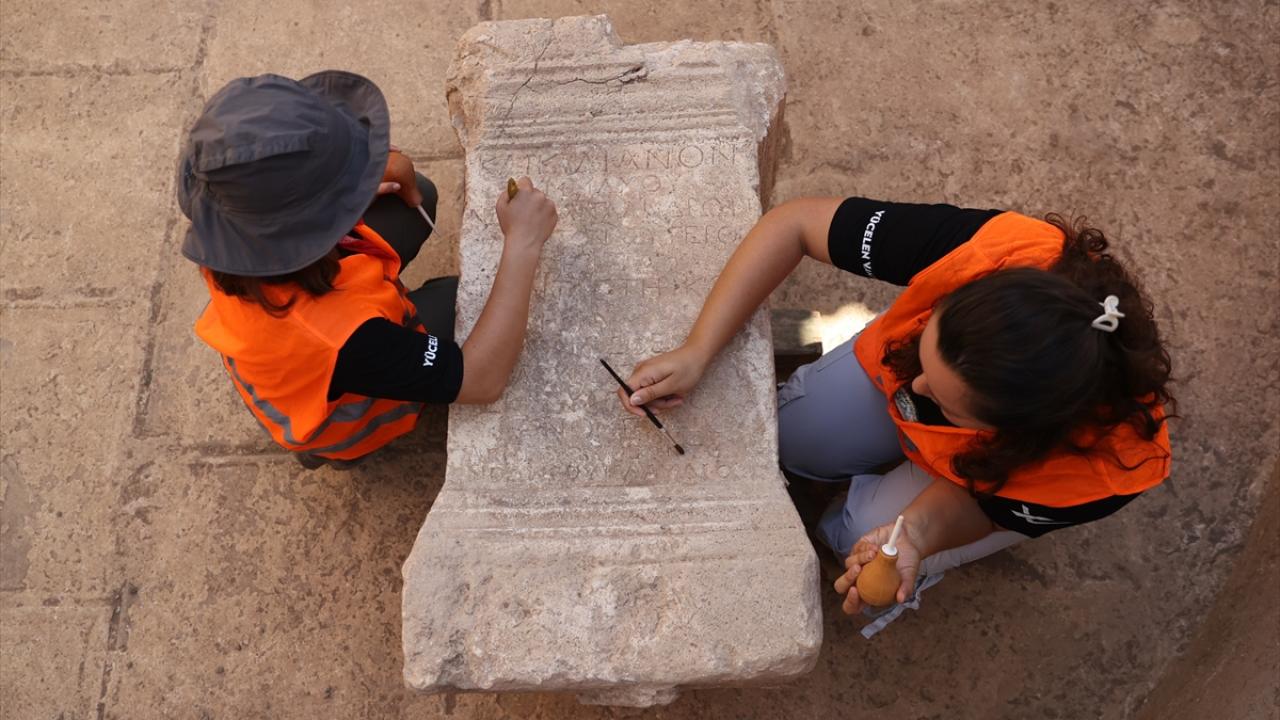 Koruma ve restorasyon işlemlerinin de yapıldığı antik kentte, "liman hamamı" olarak adlandırılan bölgedeki kazılarda Roma dönemine ait olduğu değerlendirilen yazıt bulundu.