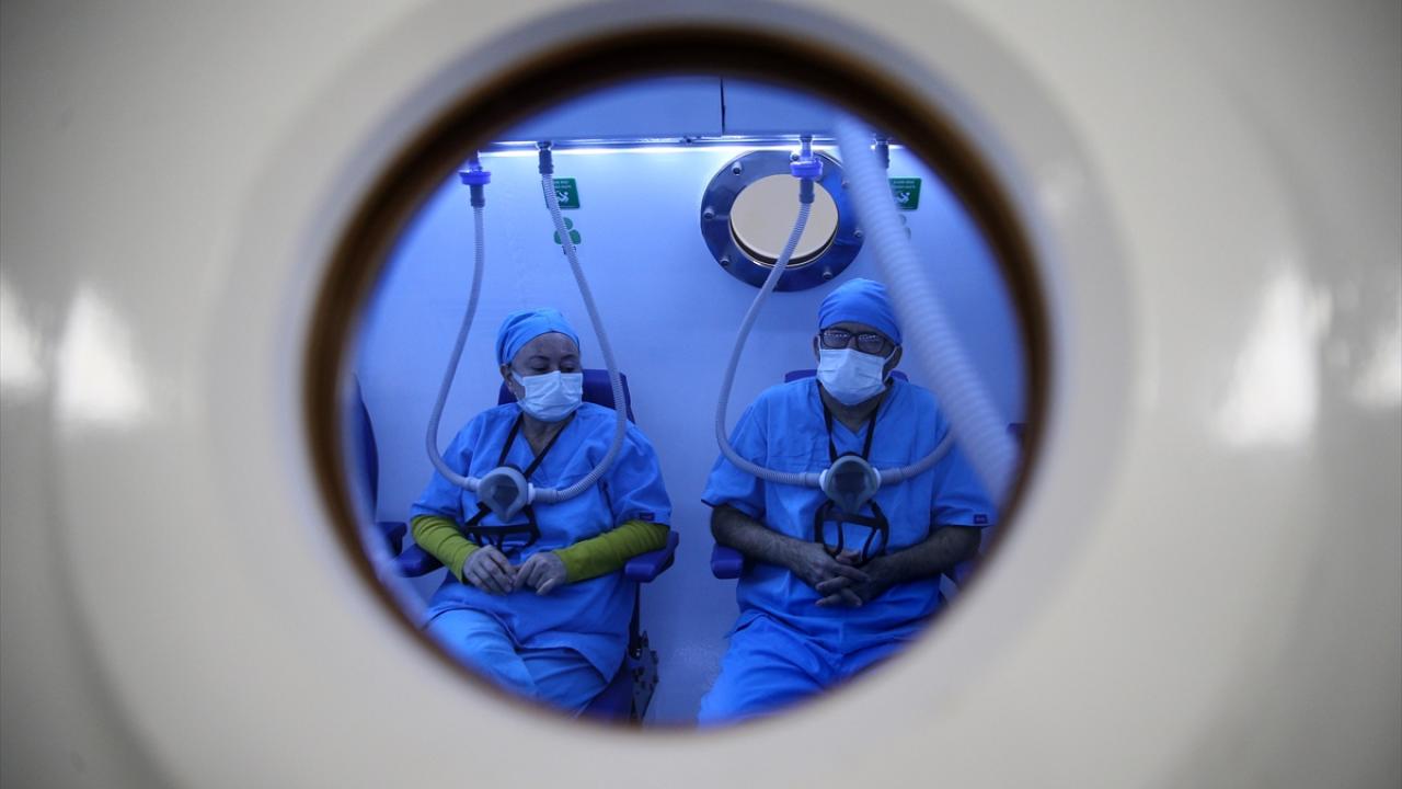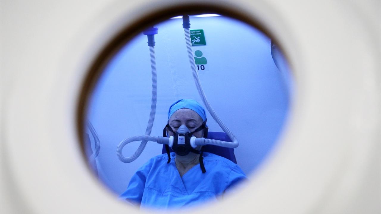 Hastaya, yüksek basınçla donatılan odada saf oksijen solunmasıyla gerçekleştirilen hiperbarik oksijen tedavisi uygulandı.