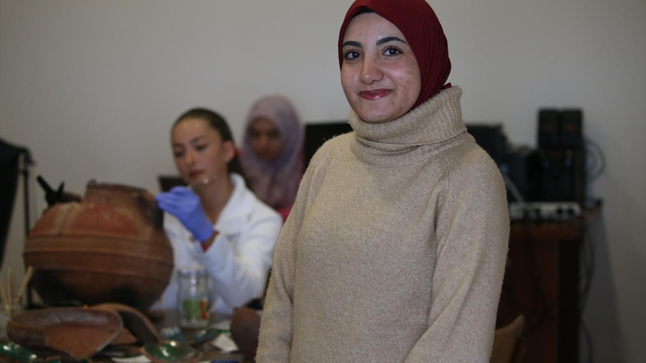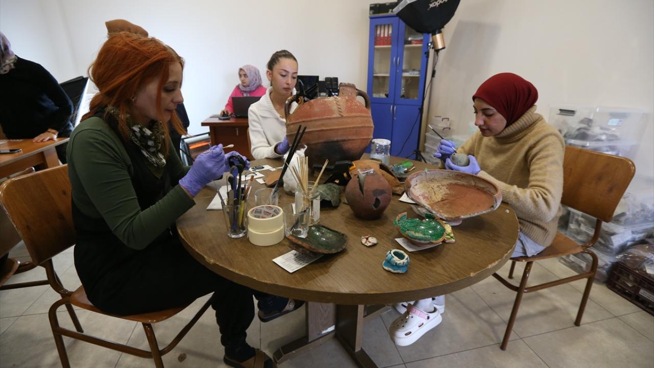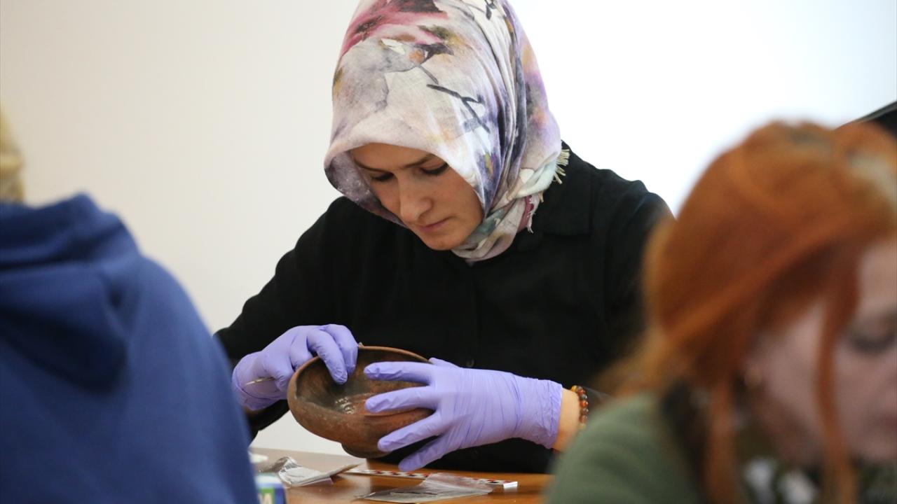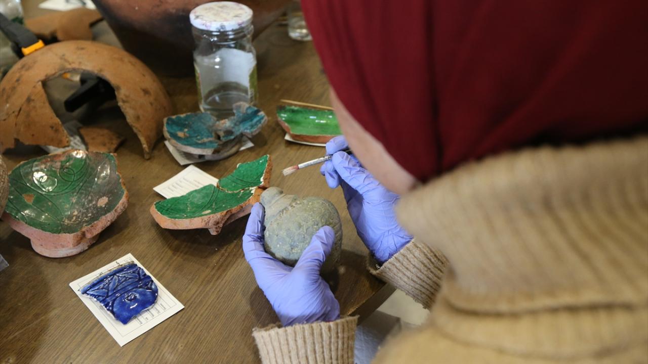 Arazide çalışarak buldukları eserleri restore ettiklerini anlatan Karataş, "1000 yıl önce bu topraklarda yaşamış insanların kullandığı eşyaları gün yüzüne çıkarmak, onları restore etmek bizim için çok güzel bir deneyim. 1000 yıl önce başka bir kadın tarafından kullanılan bilezik parçalarını bugün gün yüzüne kızlar, kadınlar olarak çıkardık şimdi temizliyoruz. Eşsiz bir deneyim, çok heyecanlıyım." ifadelerini kullandı.