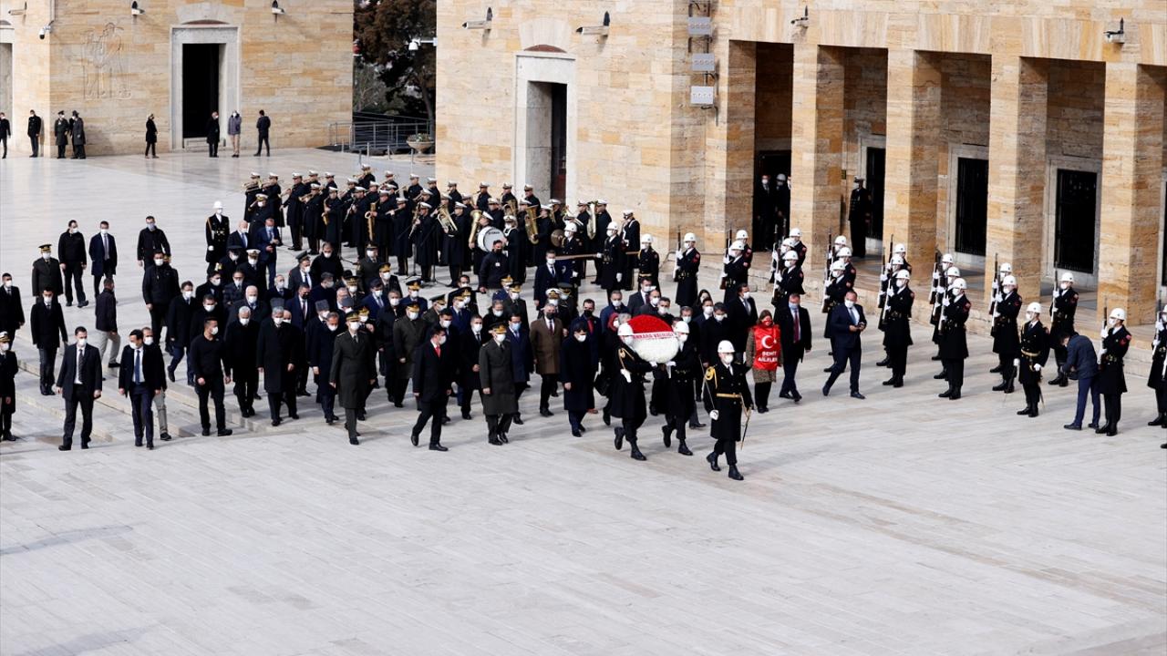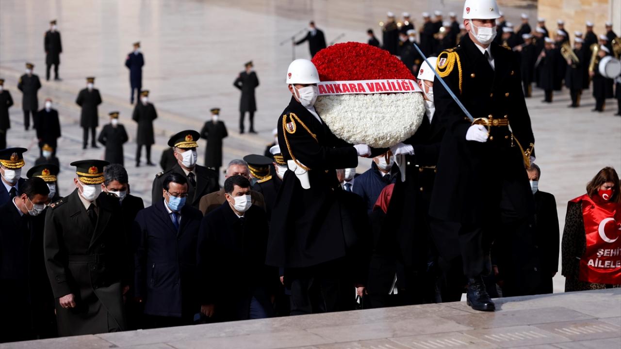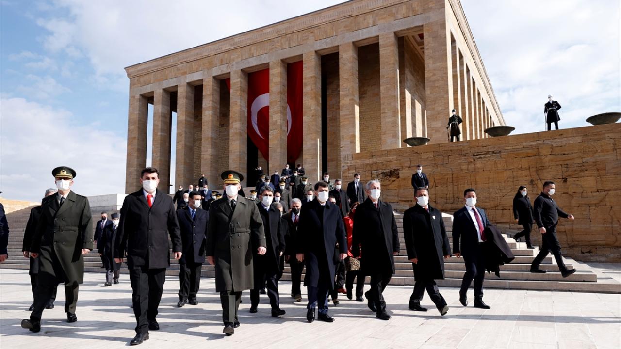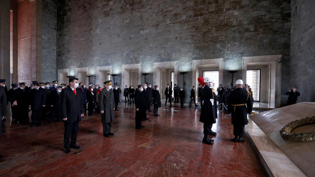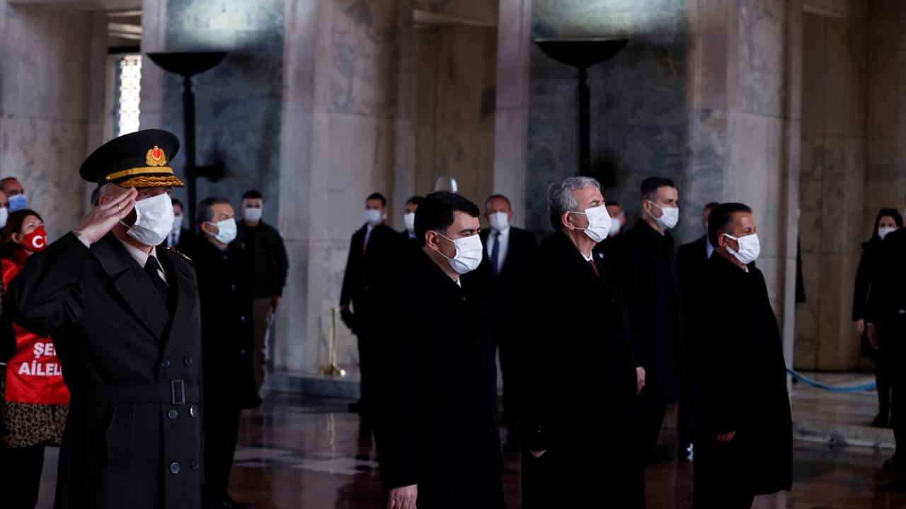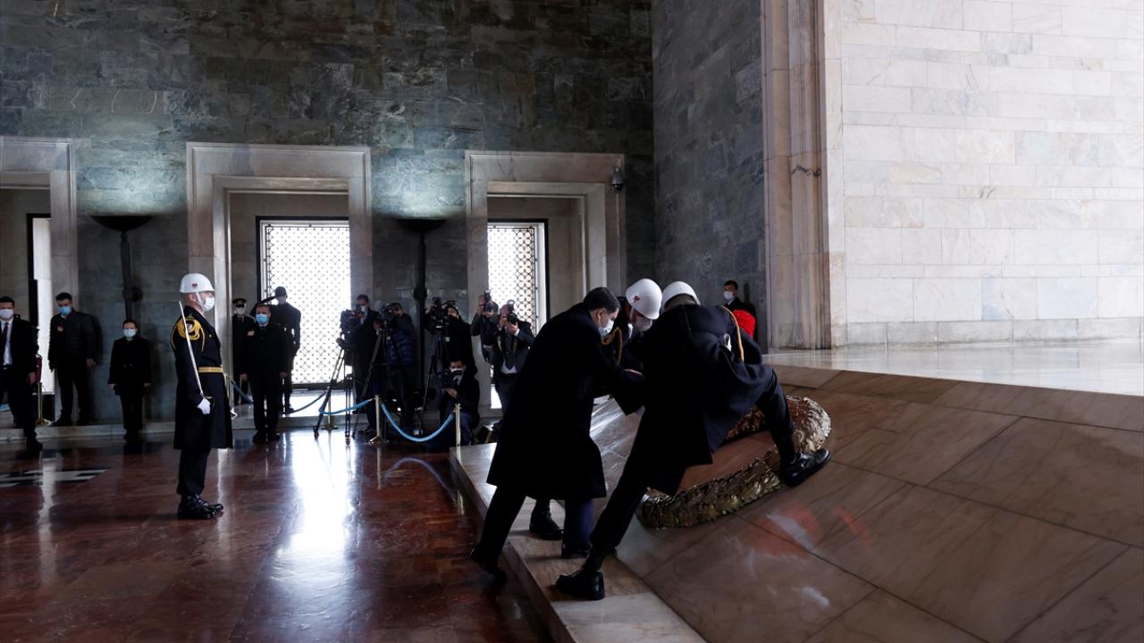 Şahin`in mozoleye çelenk bırakmasının ardından saygı duruşunda bulunuldu, İstiklal Marşı okundu.