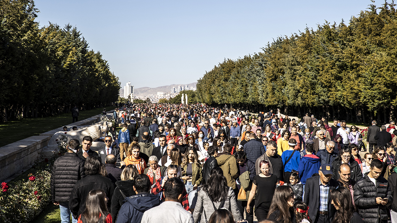 Cumhuriyet'in kurucusu Ulu Önder Gazi Mustafa Kemal Atatürk'ün ebedi istirahatgahı Anıtkabir, 29 Ekim Cumhuriyet Bayramı dolayısıyla ziyaretçilerin akınına uğradı.
