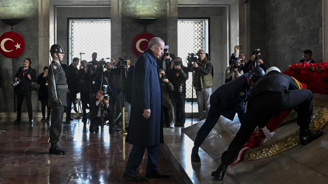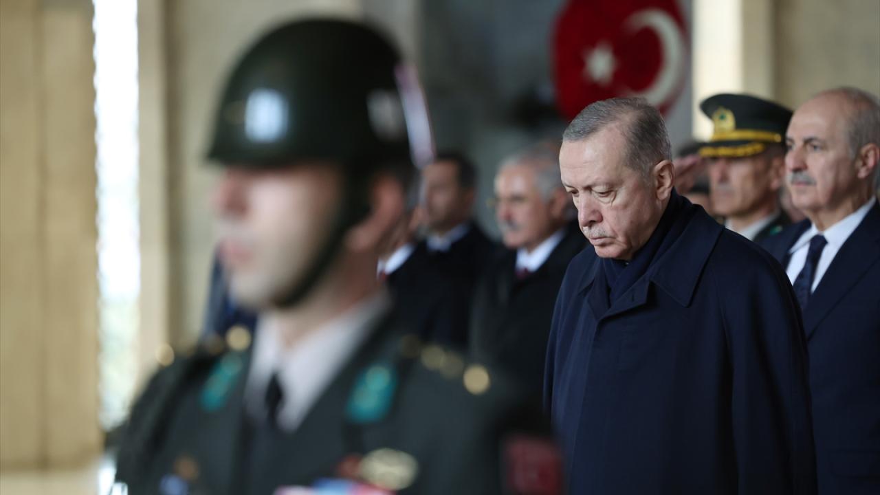 Cumhurbaşkanı Erdoğan, kırmızı beyaz karanfillerden oluşan ay yıldızlı çelengi, Atatürk`ün mozolesine bıraktı.
