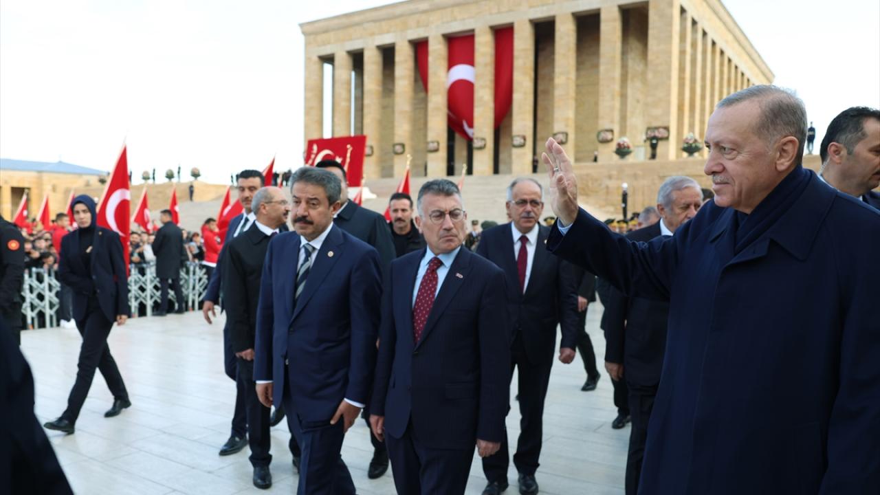 Saygı duruşu sırasında gönderdeki Türk bayrağı yarıya indirildi. Cumhurbaşkanı Erdoğan ve protokolde yer alan devlet erkanı, daha sonra Misak-ı Milli Kulesi`ne geçti.