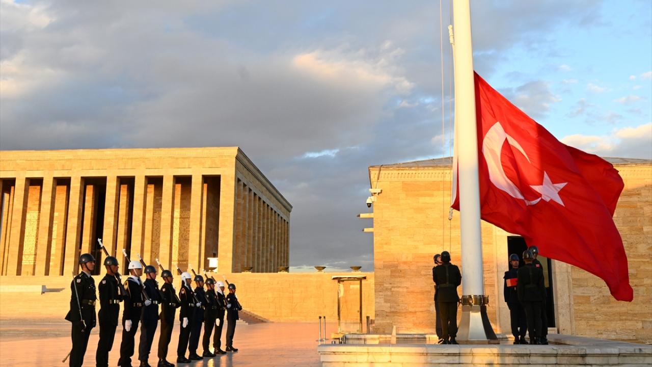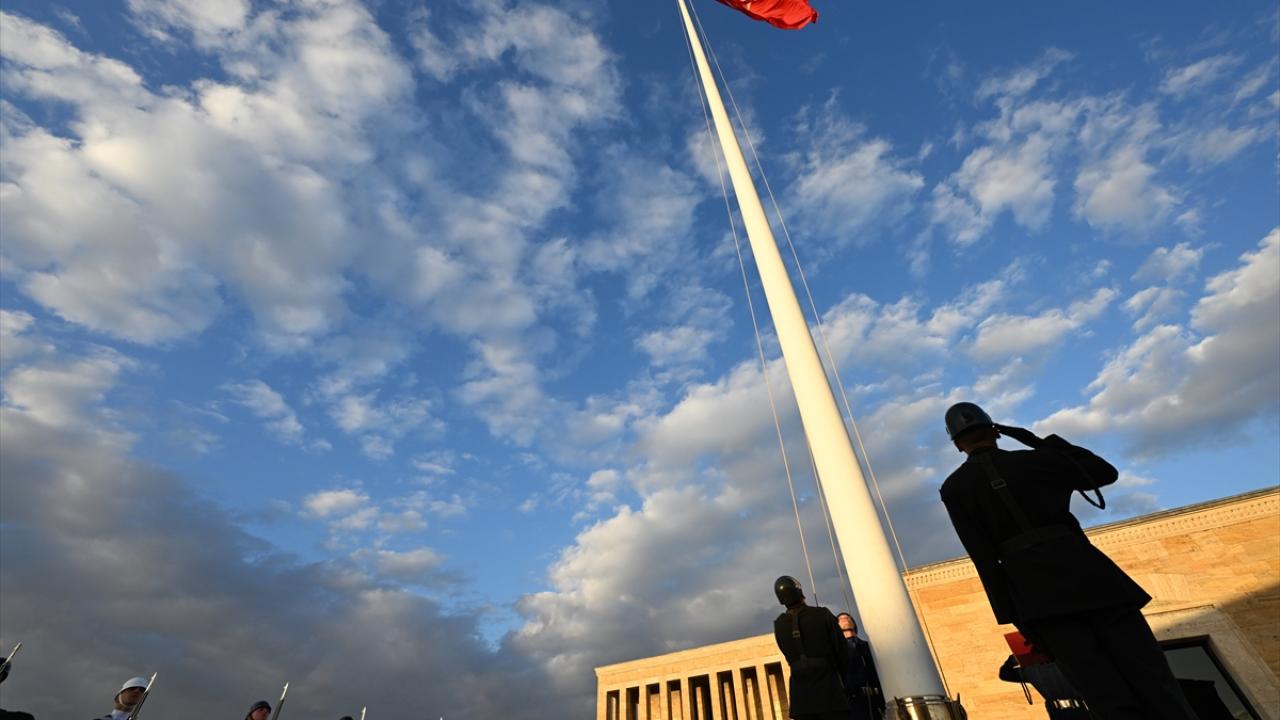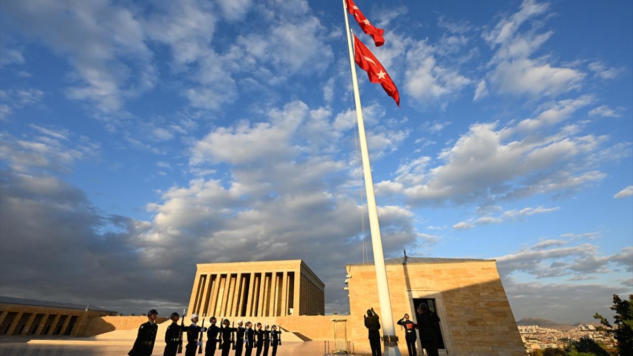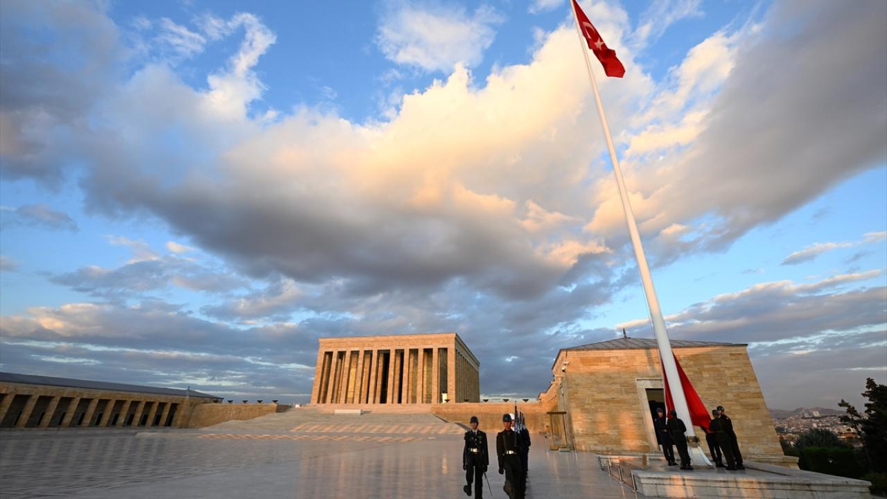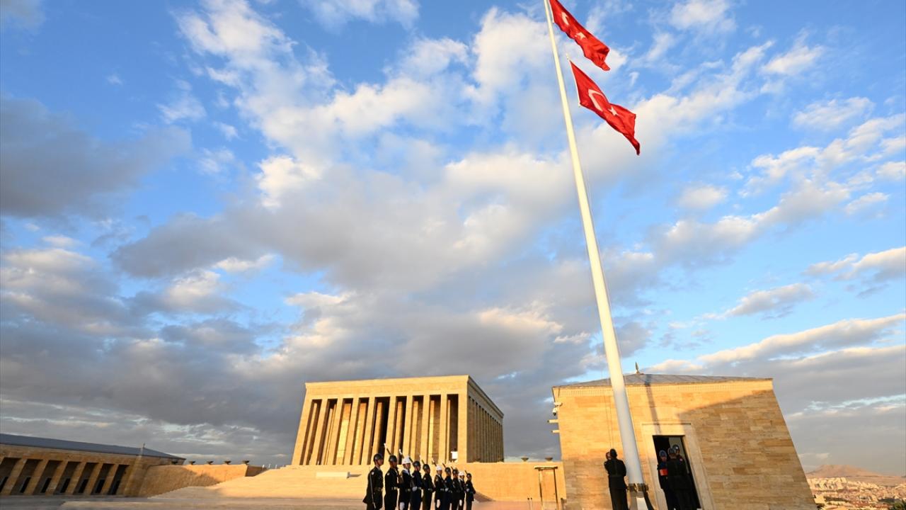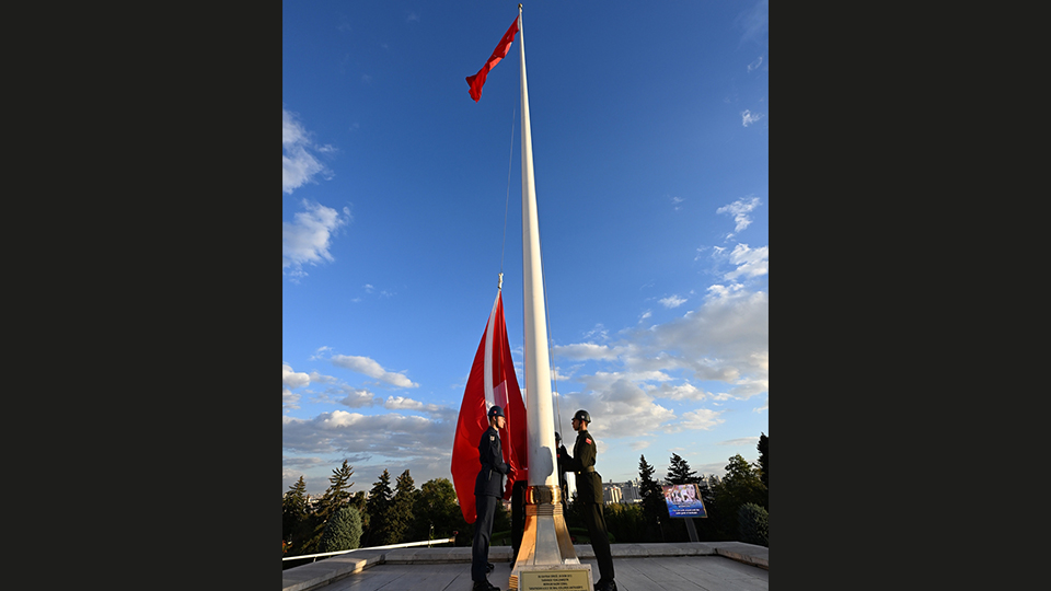 Ulu Önder Atatürk`ün ebedi istirahatgahı Anıtkabir`de dalgalanan bayrak için yıllardır gönderden indirilmeden tören düzenleniyor.
