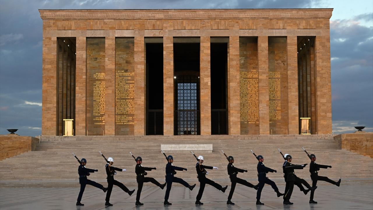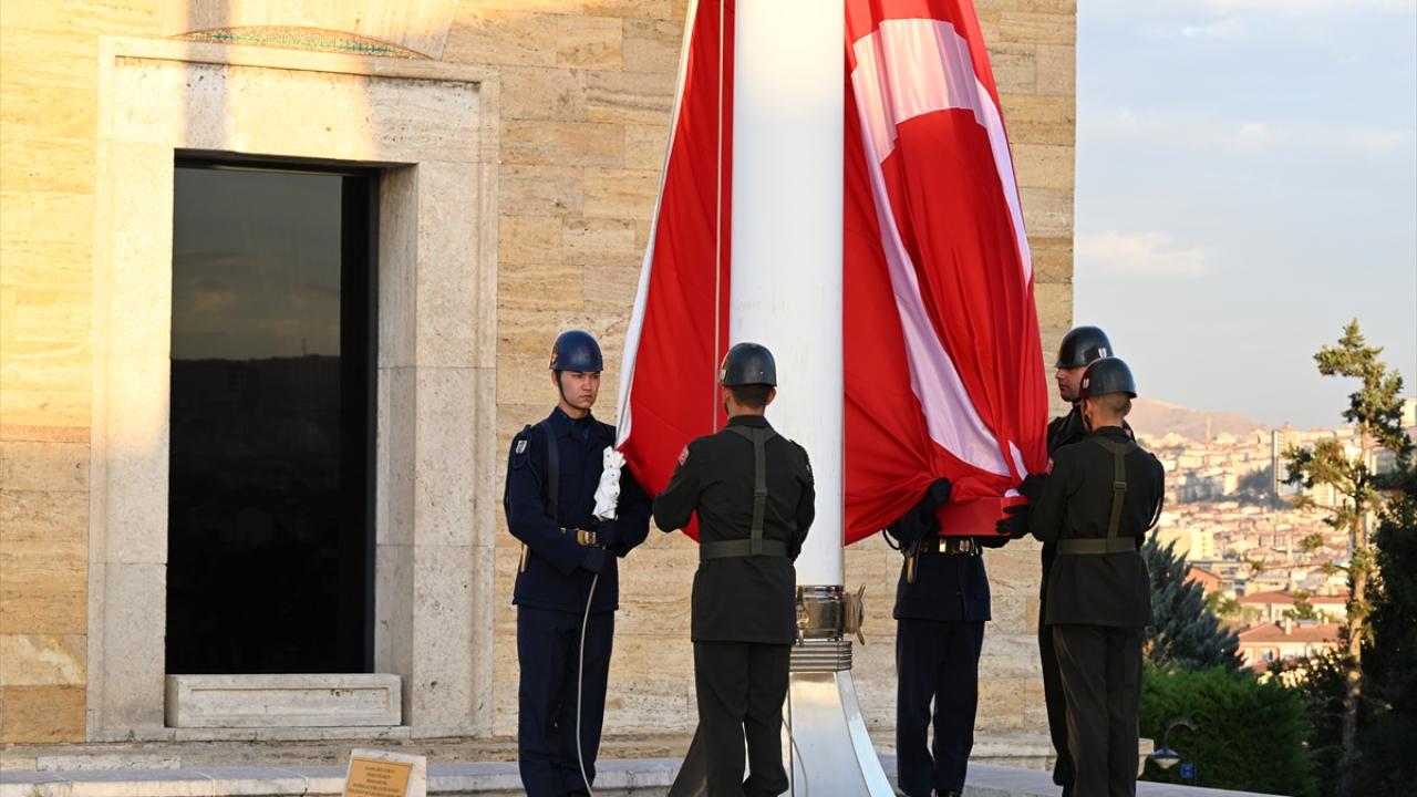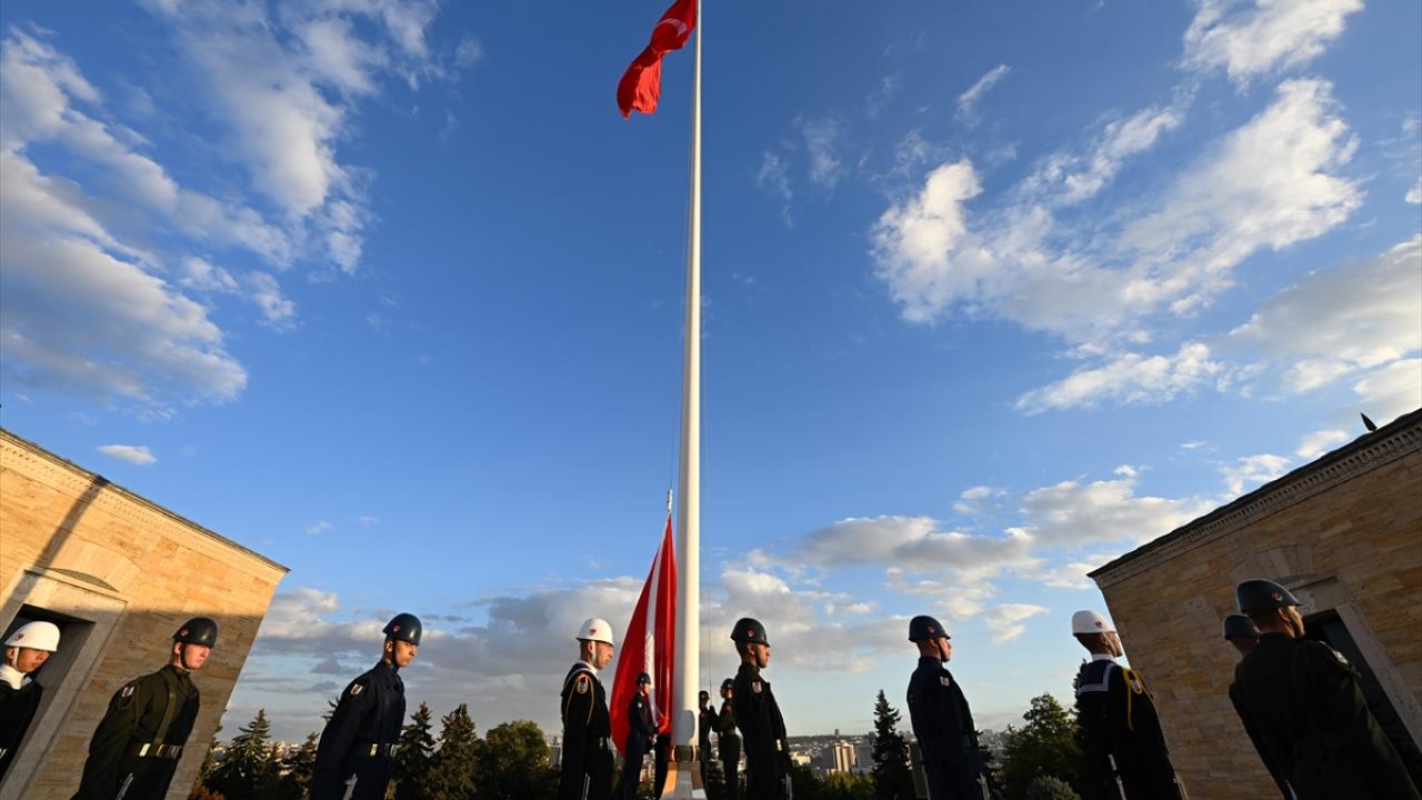 Türkiye Cumhuriyeti'nin kurucusu Mustafa Kemal Atatürk'ün ebedi istirahatgahı Anıtkabir'de dalgalanan ve gönderden hiç indirilmeyen bayrak törenle değiştiriliyor.