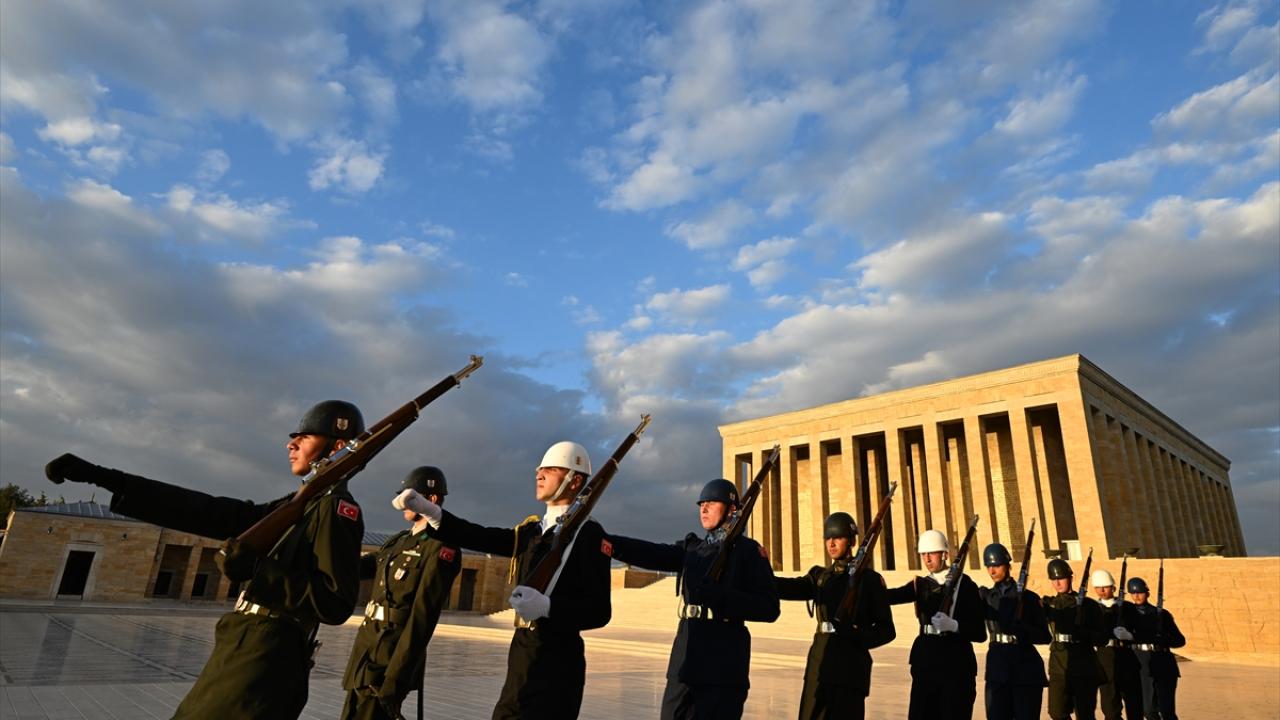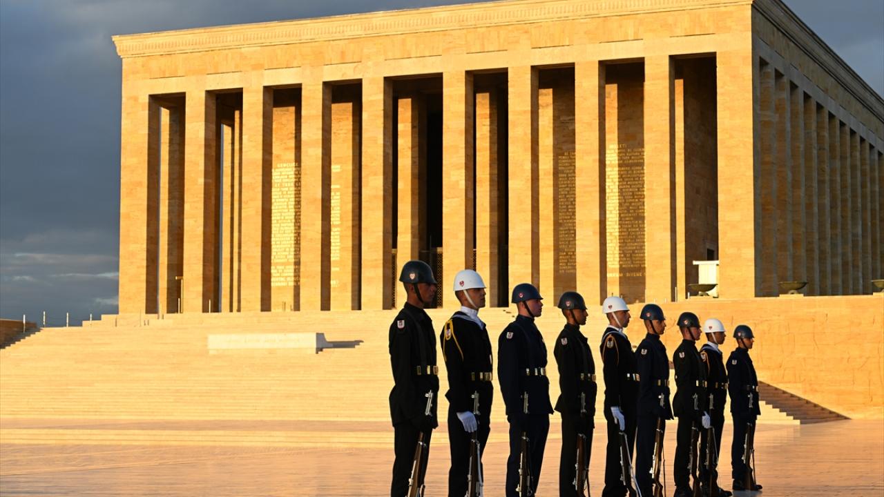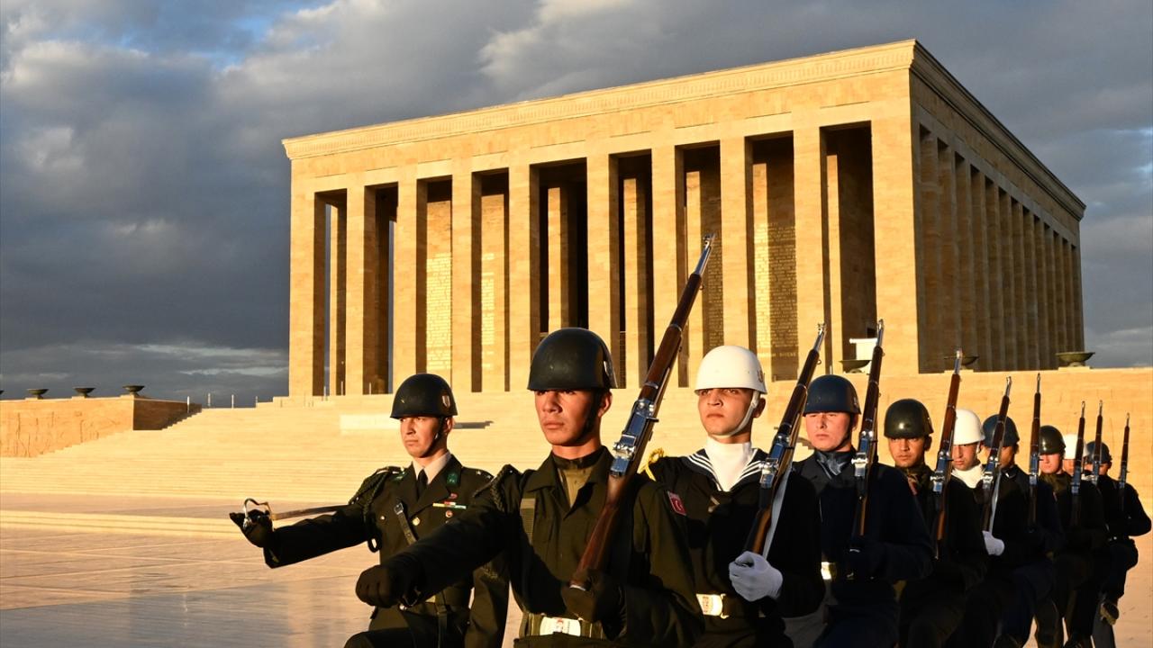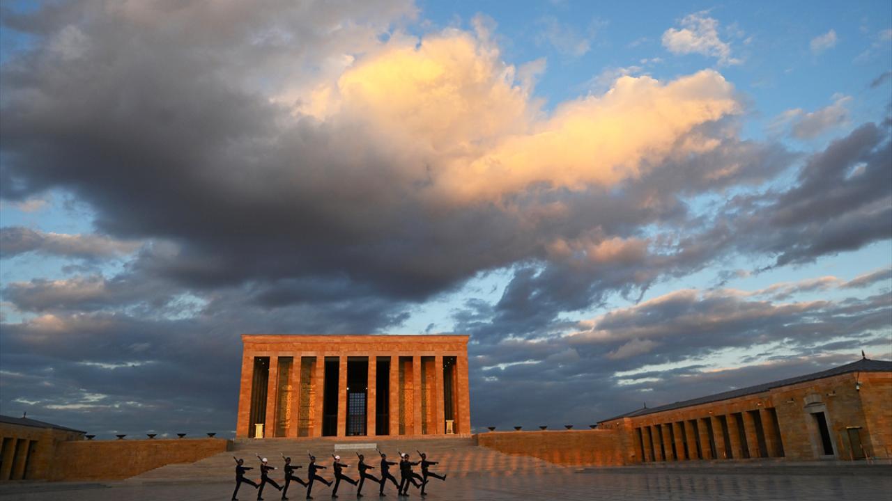Türkiye Cumhuriyeti'nin kurucusu Mustafa Kemal Atatürk'ün ebedi istirahatgahı Anıtkabir'de dalgalanan ve gönderden hiç indirilmeyen bayrak törenle değiştiriliyor.