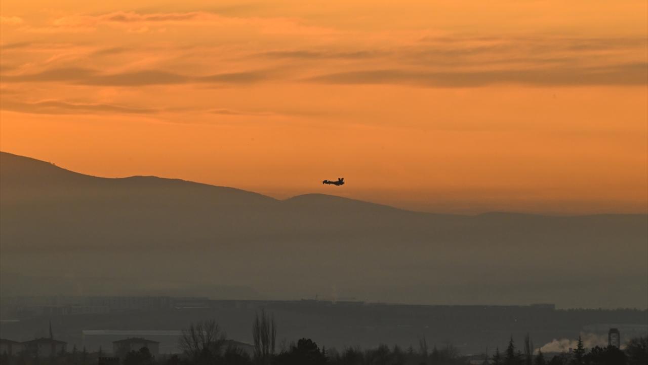 ANKA-S insansız hava aracı, gün doğumunda Ankara’daki TUSAŞ tesisi yakınlarında görüntülendi.