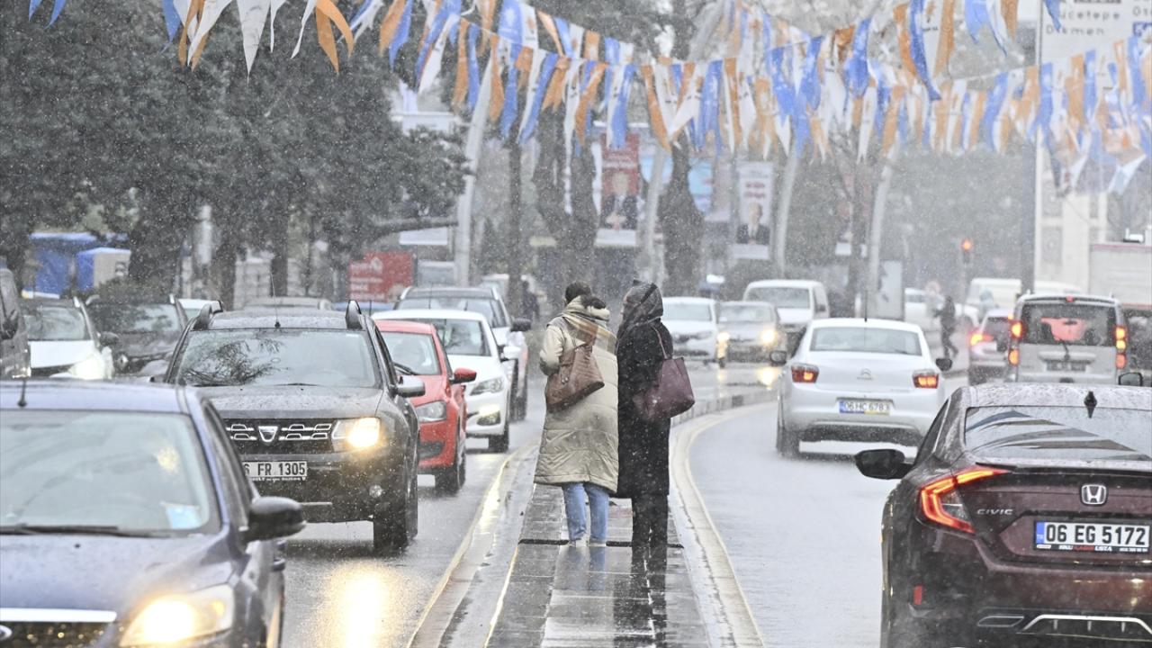 Dün sağanağın etkili olduğu Ankara`da kent sakinleri, yeni güne karla uyandı.