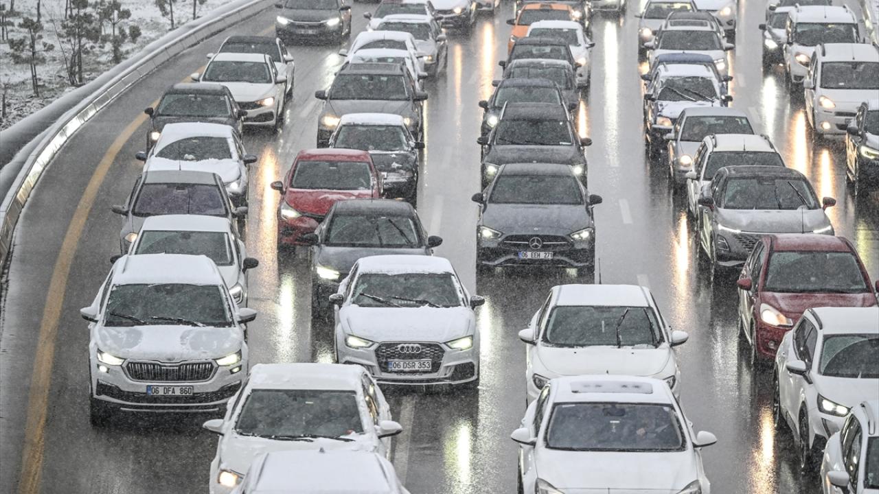Dikmen ve İncek gibi kentin yüksek kesimlerde daha yoğun görülen kar, araçların üzerinde beyaz örtü oluşturdu.