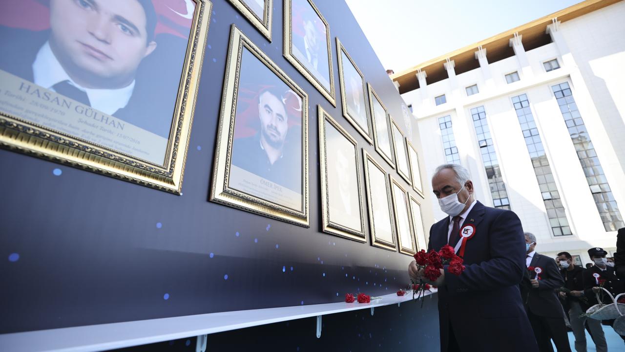 İçişleri Bakan Yardımcısı Mehmet Ersoy, konuşma için geldiği kürsüden, darbe girişimi gecesi FETÖ`cülerin vurduğu Ankara İl Emniyet Müdürlüğü binasında şehit olan sivil ve personel 13 kişinin ismini okudu.