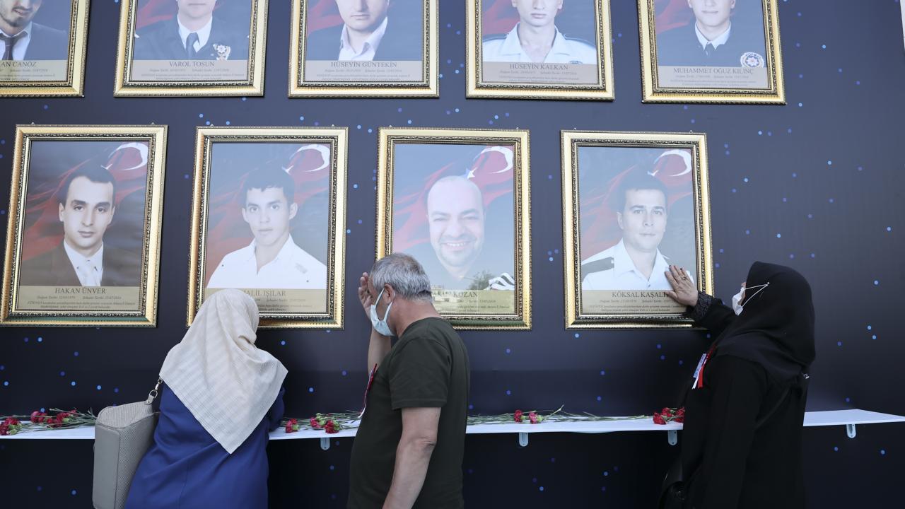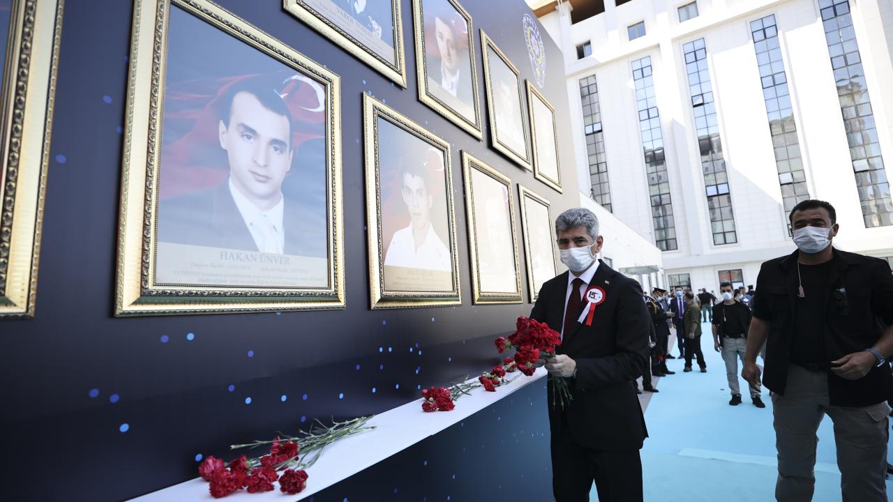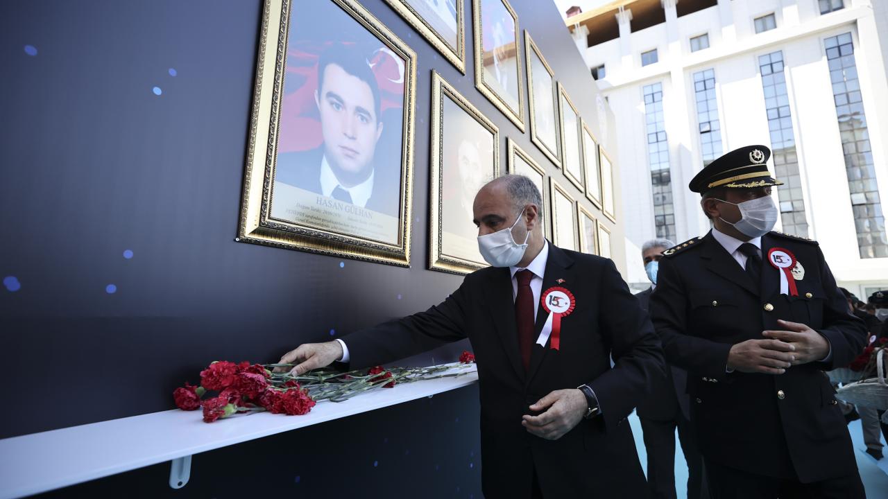 Programın ardından İl Emniyet Müdürlüğü savunmasında şehit düşen sivil ve personel 13 şehidin fotoğraflarının yer aldığı ve karanfil bırakılan alana gelen şehit yakınları duygu dolu anlar yaşadı.