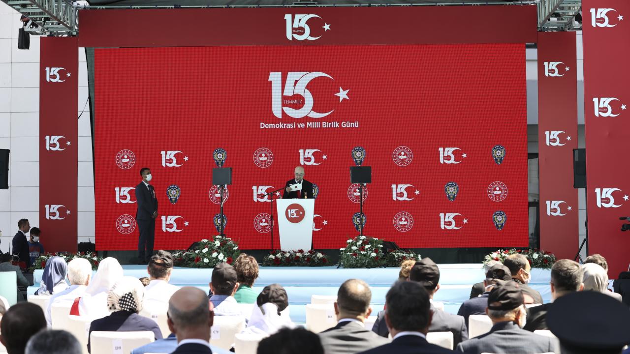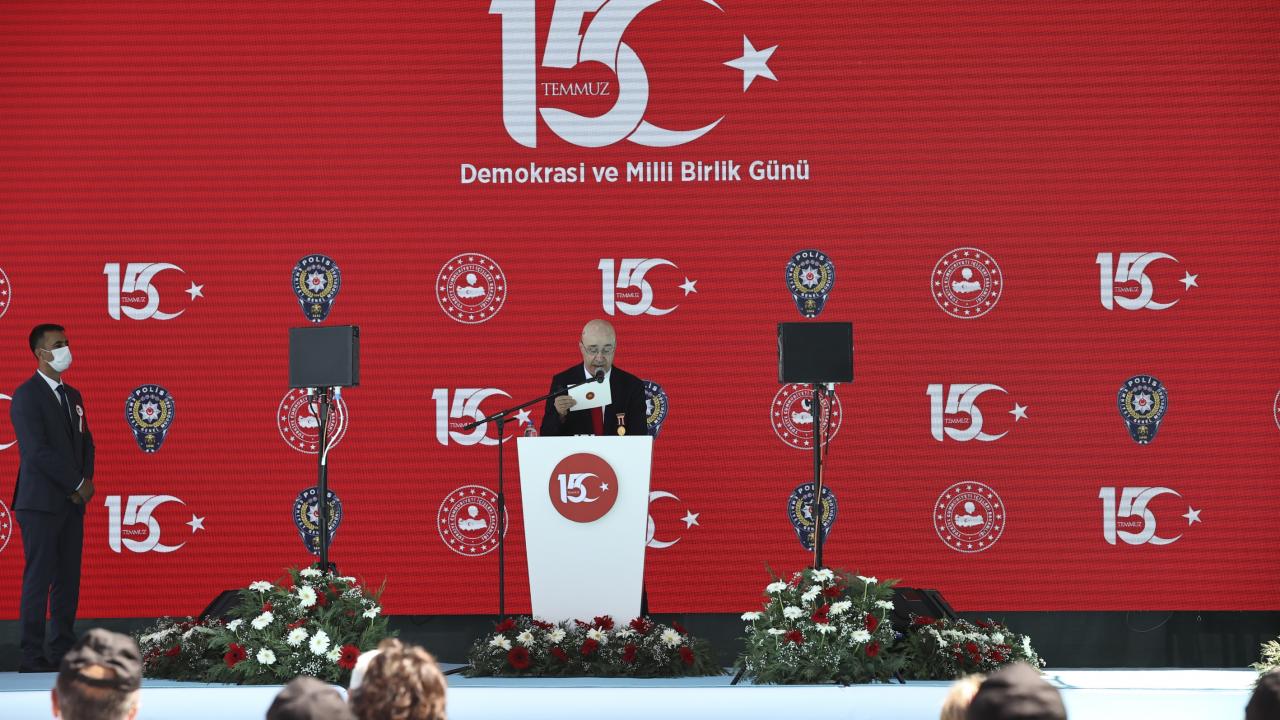 Emniyet Genel Müdürü Mehmet Aktaş ise konuşmasında 15 Temmuz`un milletin iradesini canıyla ve kanıyla koruduğu bir zafer gecesi olduğunu belirterek, "O gece bizim yaptığımız yeni bir şey değildir. Bu milletin asli karakteridir. Ülkemizin bekası ve bütünlüğü, milletimizin onuru tehlikeye düştüğünde en ağır bedelleri de göze alarak ortaya koyduğumuz kahramanlıklara tarih de dünya da şahittir." ifadelerini kullandı.