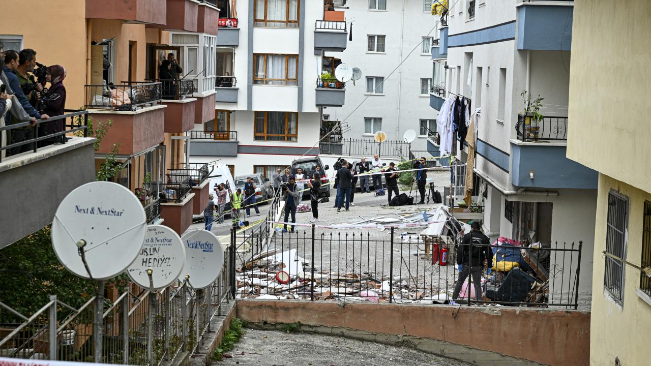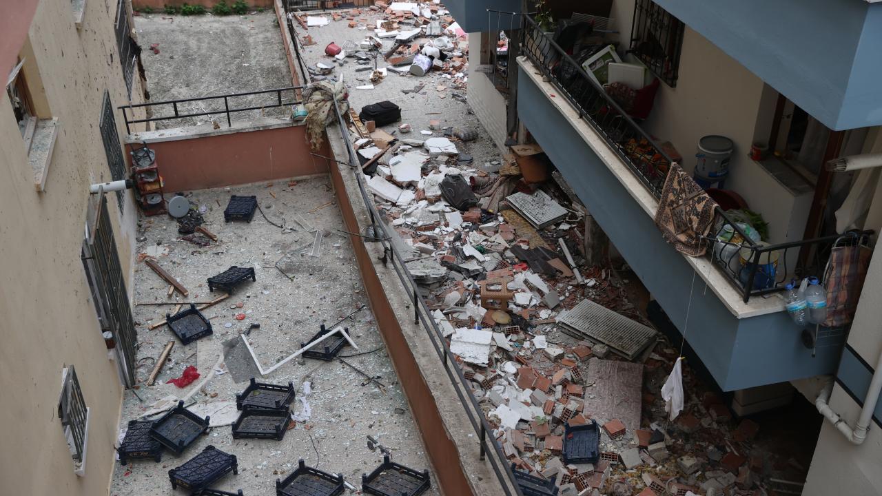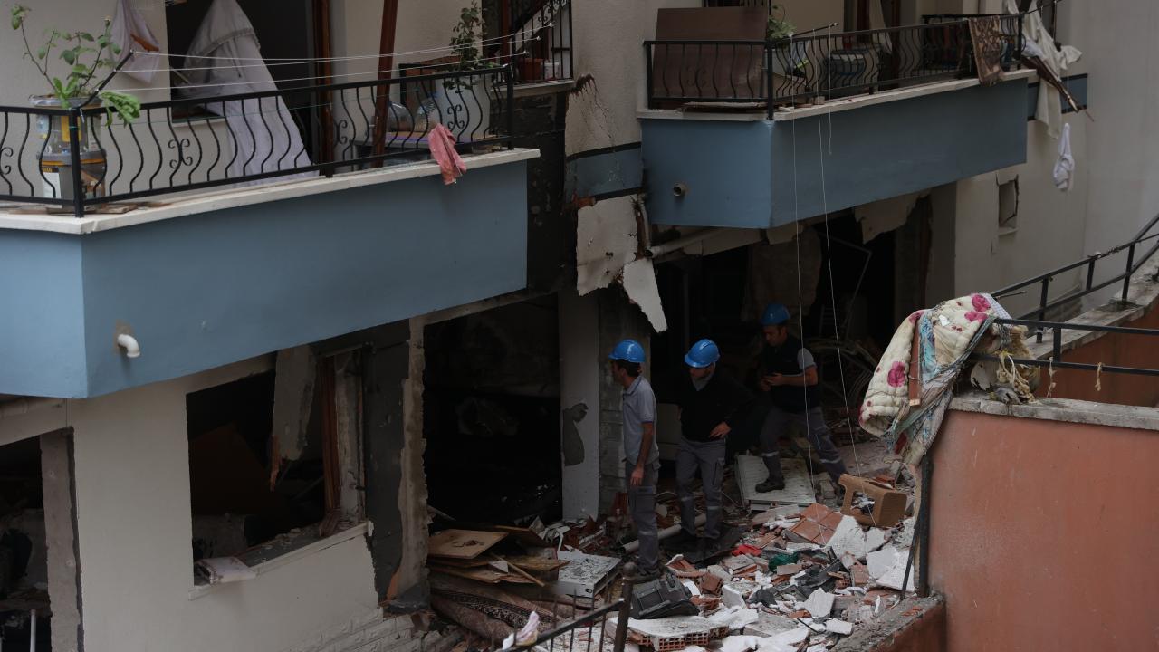 İtfaiye, doğal gaz ve polis ekipleri olayın ardından binadaki incelemelerini sürdürüyor.