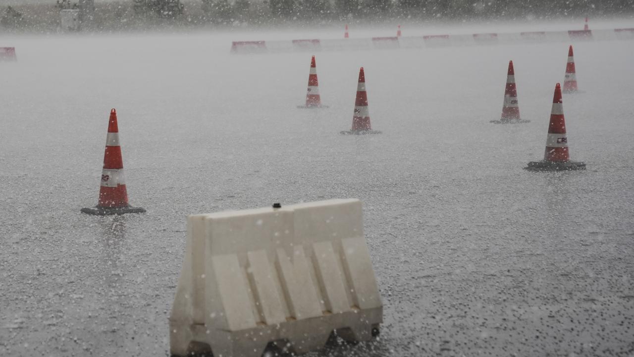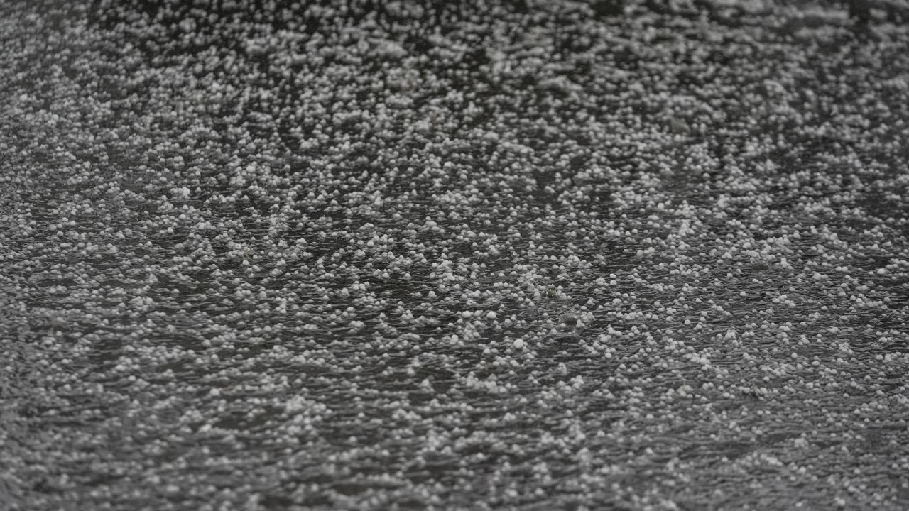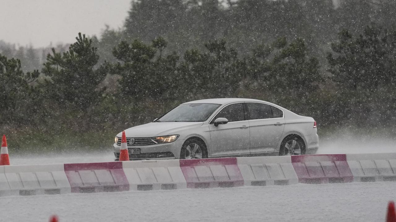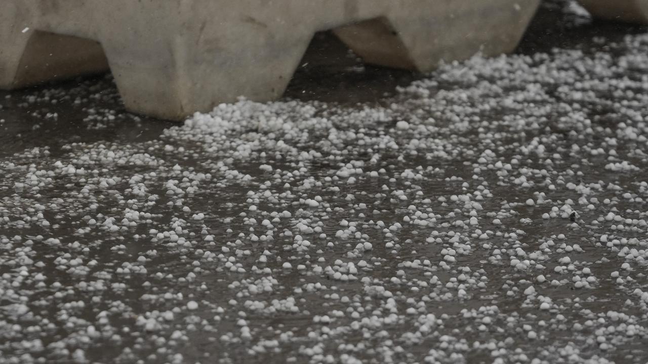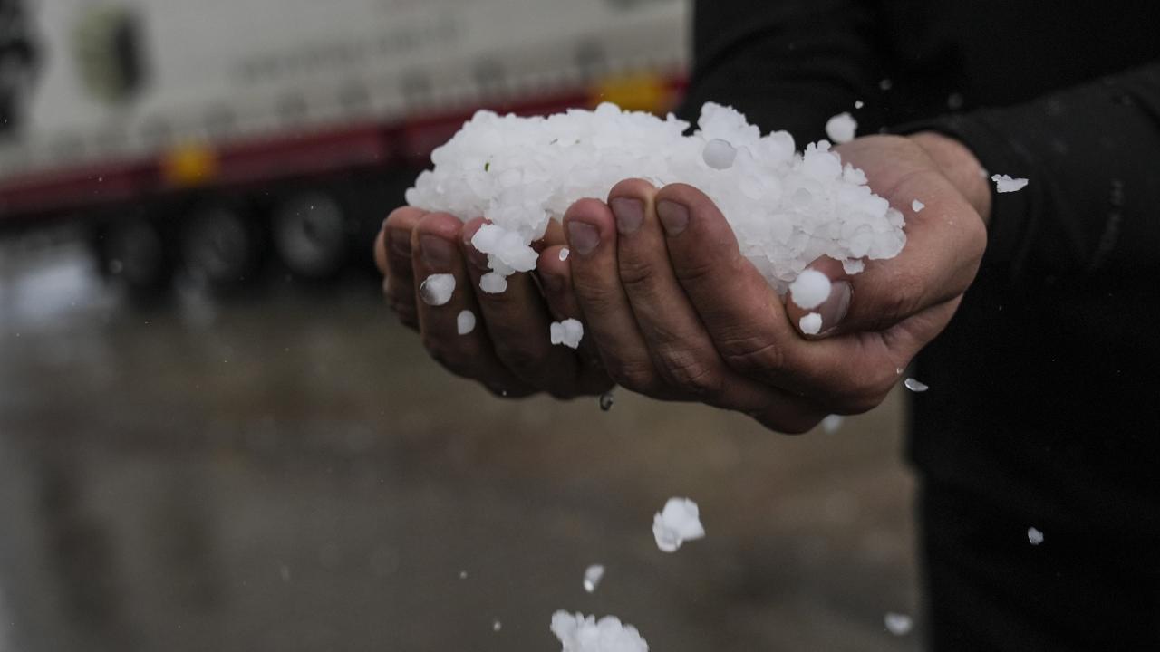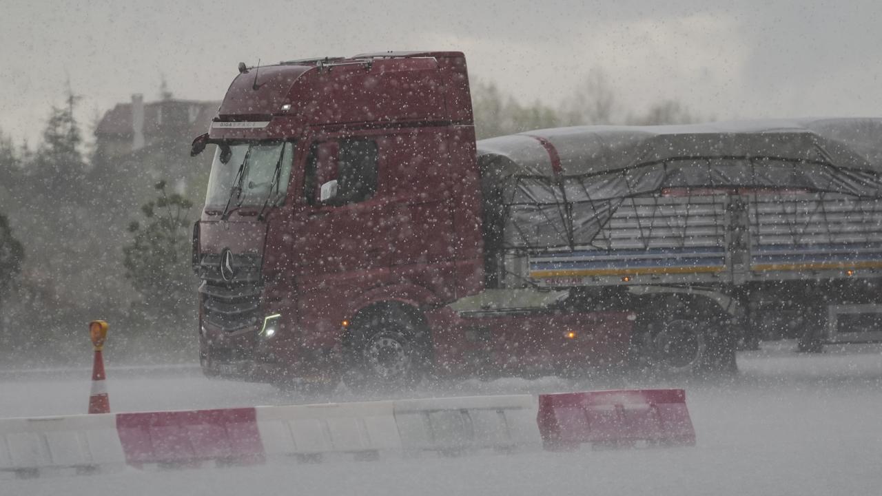 Otoyolda dolu yağışının yoğunlaştığı alanlar beyaza büründü.