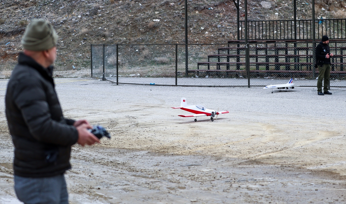 Farklı boyut ve türdeki uçakları havalandıran model uçakçılar, bir yandan antrenman yaparken, bir yandan da eğleniyor.