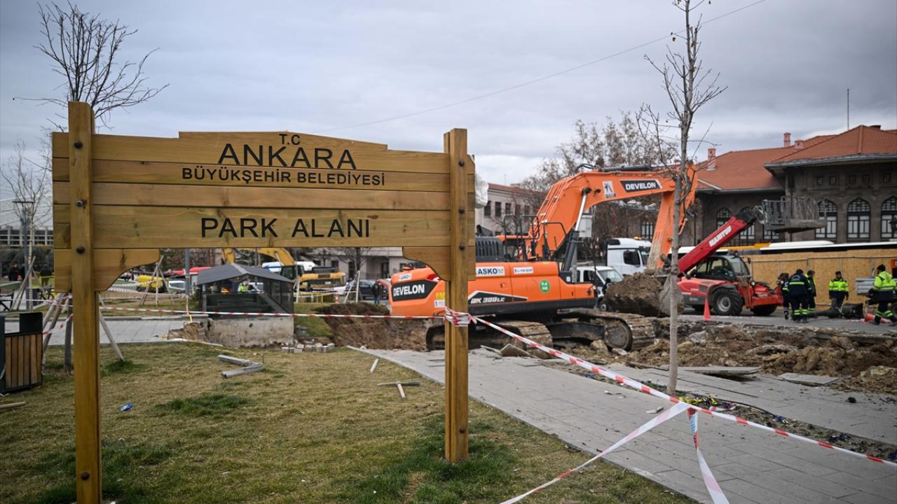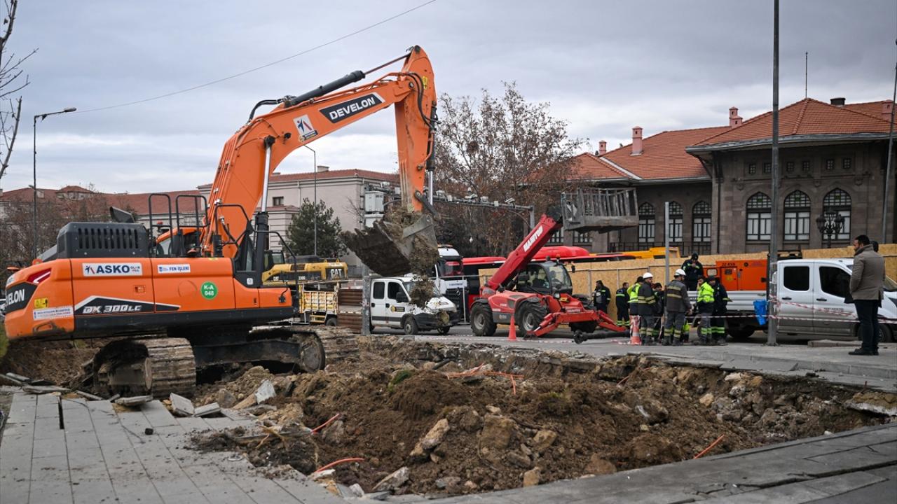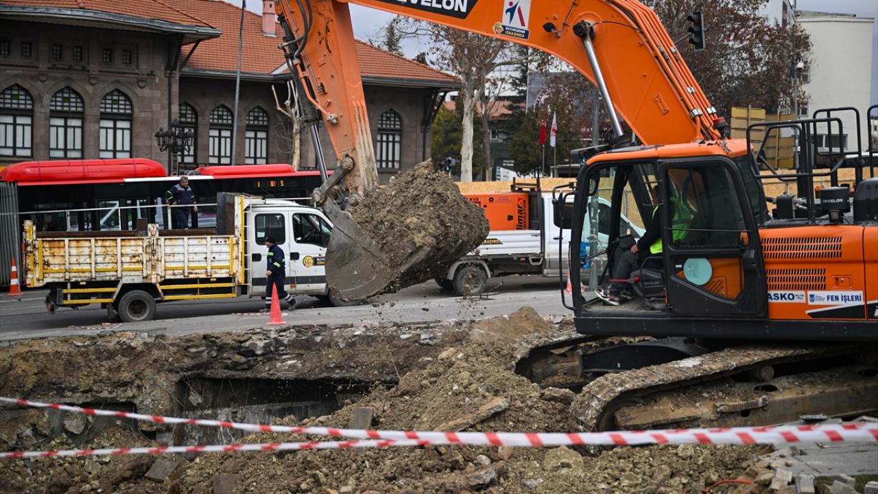 Göçüğün doldurulması için Ankara Büyükşehir Belediyesi (ABB) ekiplerince çalışma başlatıldı.