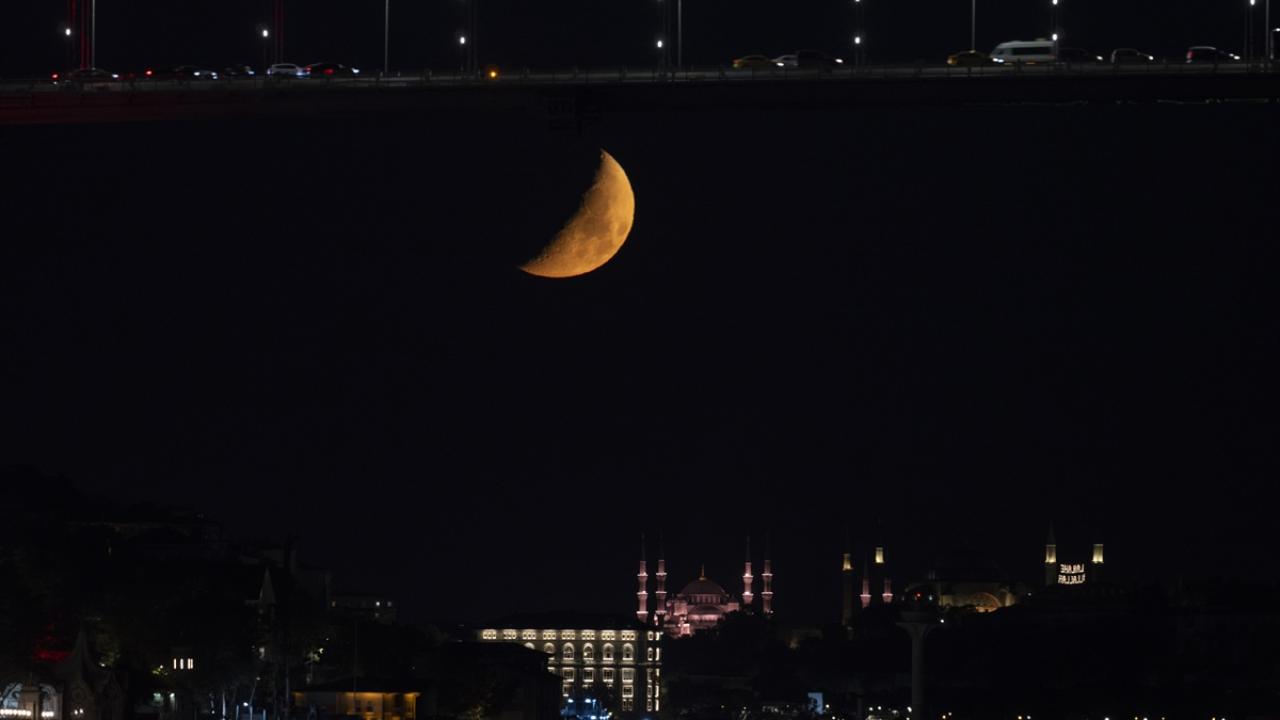 Ankara ve İstanbul'da akşam saatlerinde gökyüzünde beliren ay, güzel görüntüler oluşturdu.