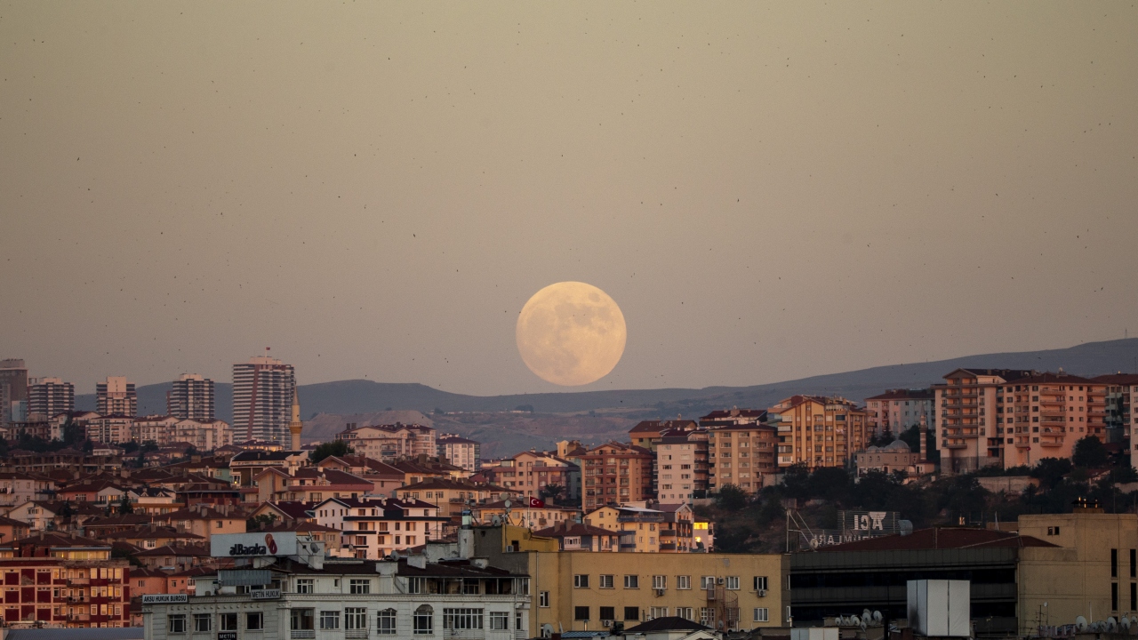 Ankara'da akşam saatlerinde gün batımı ve dolunay başkent manzarasıyla birlikte güzel görüntü oluşturdu. İstanbul'da da akşam saatlerinde dolunay manzarası dikkat çekti.