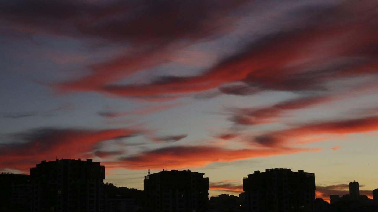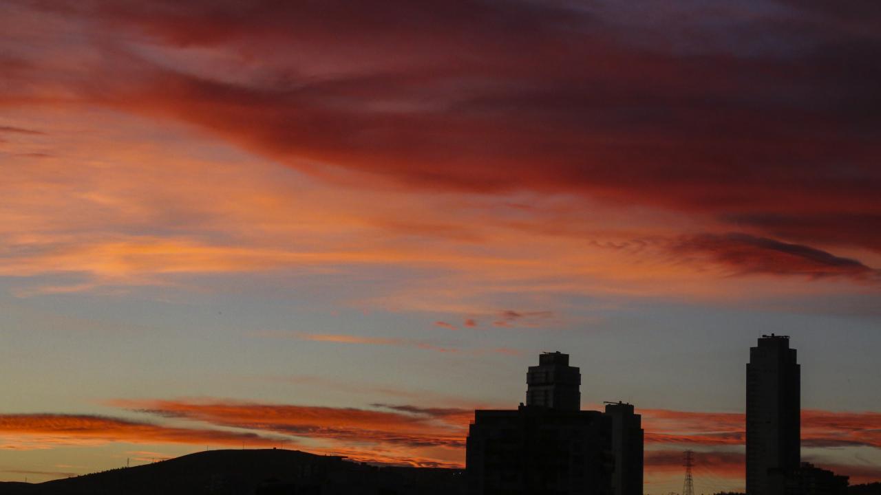 Ankara ve İstanbul'da kızılı rengine bürünen bulutlar güzel görüntüler oluşturdu.