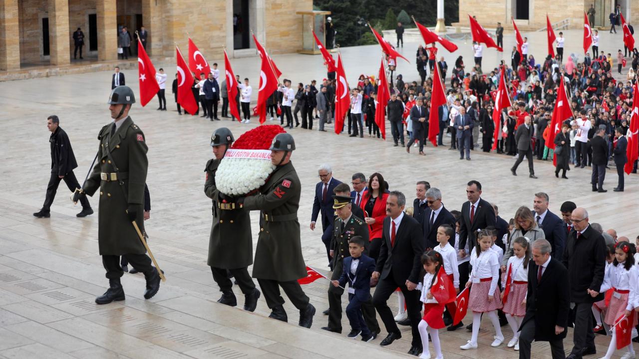 Devlet erkanının ziyareti sırasında 81 ilden gelen çocuklar da Anıtkabir`de ellerinde Türk bayrakları ile hazır bulundu. Heyet, Aslanlı Yol`dan yürüyerek Atatürk`ün mozolesine geldi. Şentop`un mozoleye çelenk bırakmasının ardından saygı duruşunda bulunuldu ve İstiklal Marşı okundu.