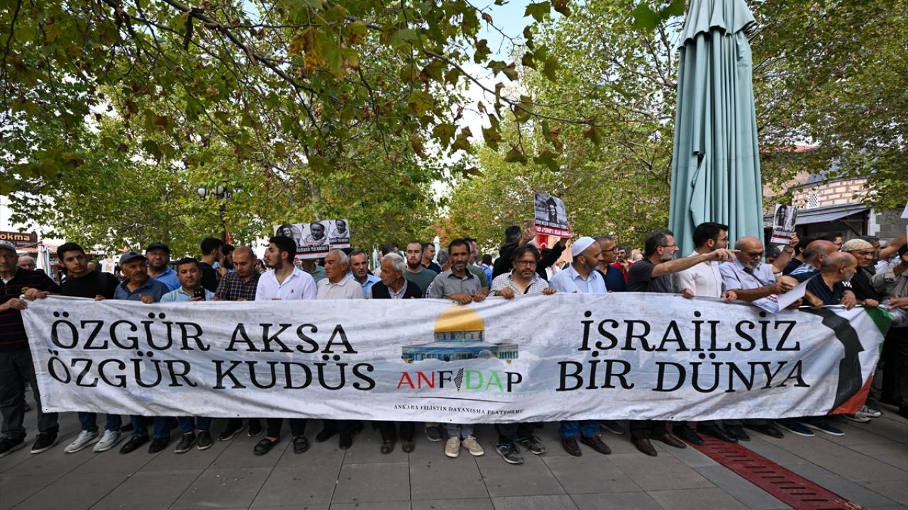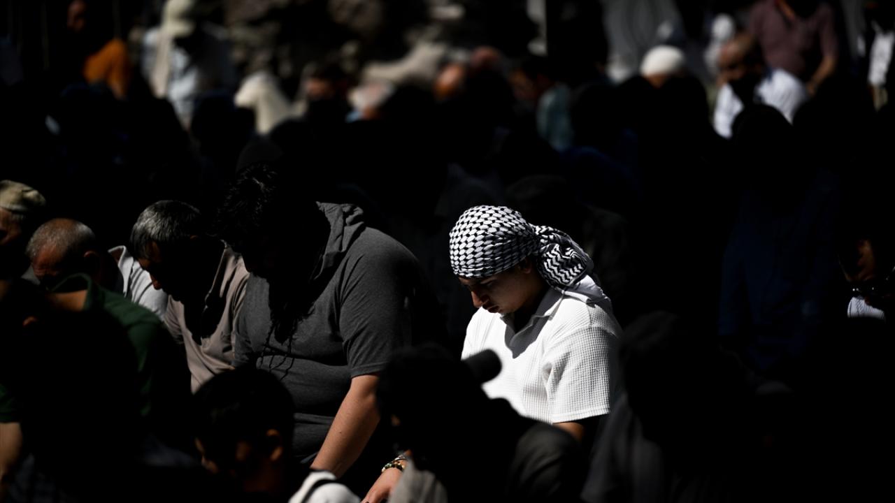Ankara Filistin Dayanışma Platformunun (ANFİDAP) çağrısıyla Hacı Bayram Veli Camisi`nde cuma namazının ardından bir araya gelen vatandaşlar, Eygi`nin gıyabi cenaze namazı için saf tuttu.