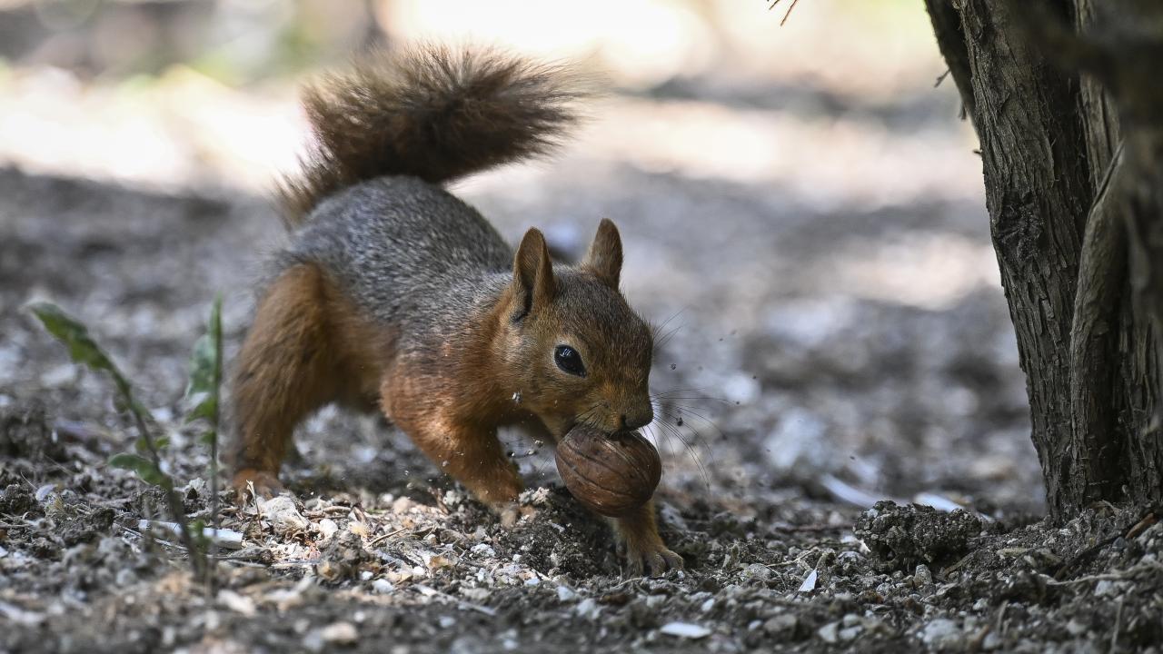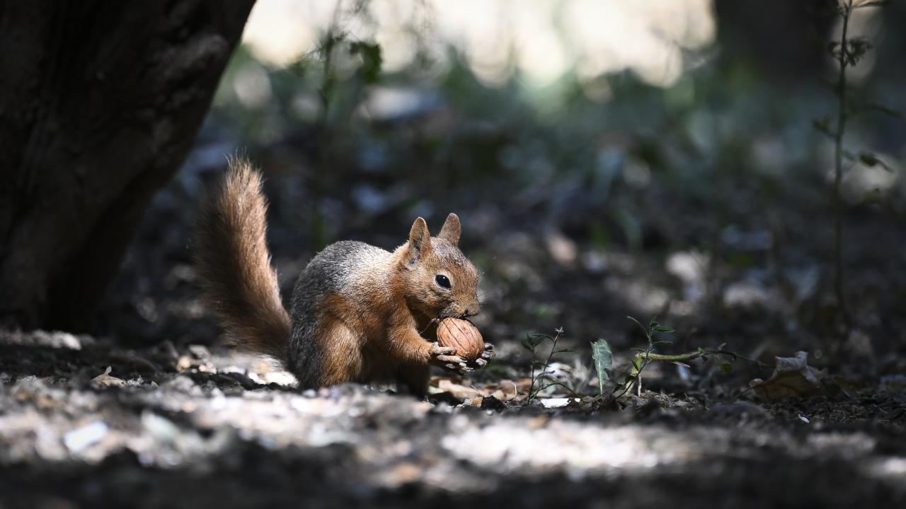 Başkent Ankara'da hava sıcaklığı mevsim normallerinin üzerinde seyrederken, Seğmenler Parkı'nı mesken edinen sincaplar, sıcaktan korunmak için ağaç yapraklarının arasında vakit geçirdi.