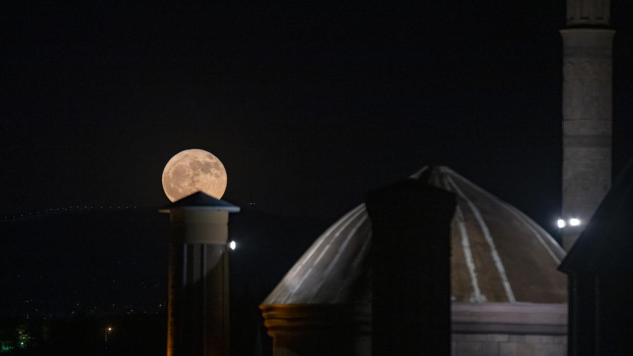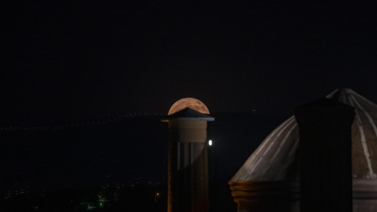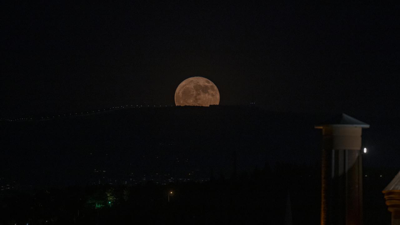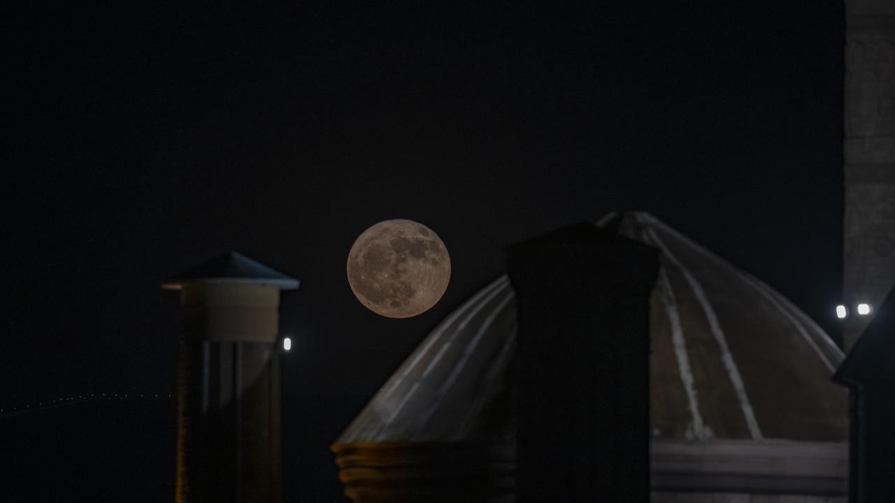 Başkent Ankara'da akşam saatlerinde beliren dolunay, güzel görüntü oluşturdu.