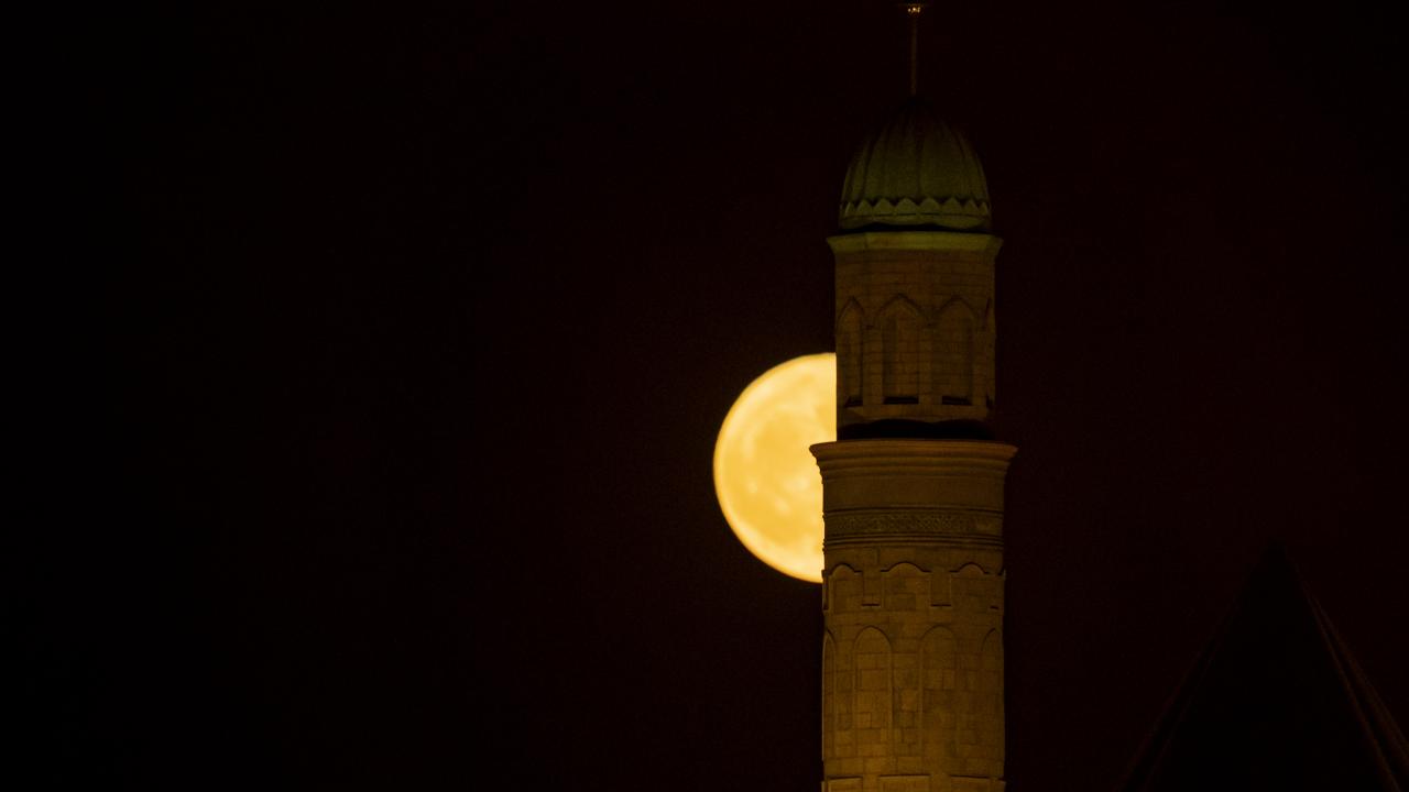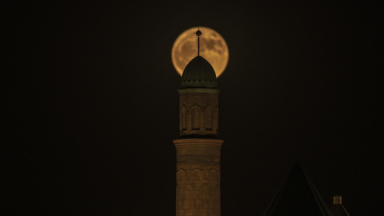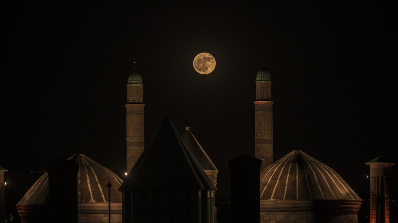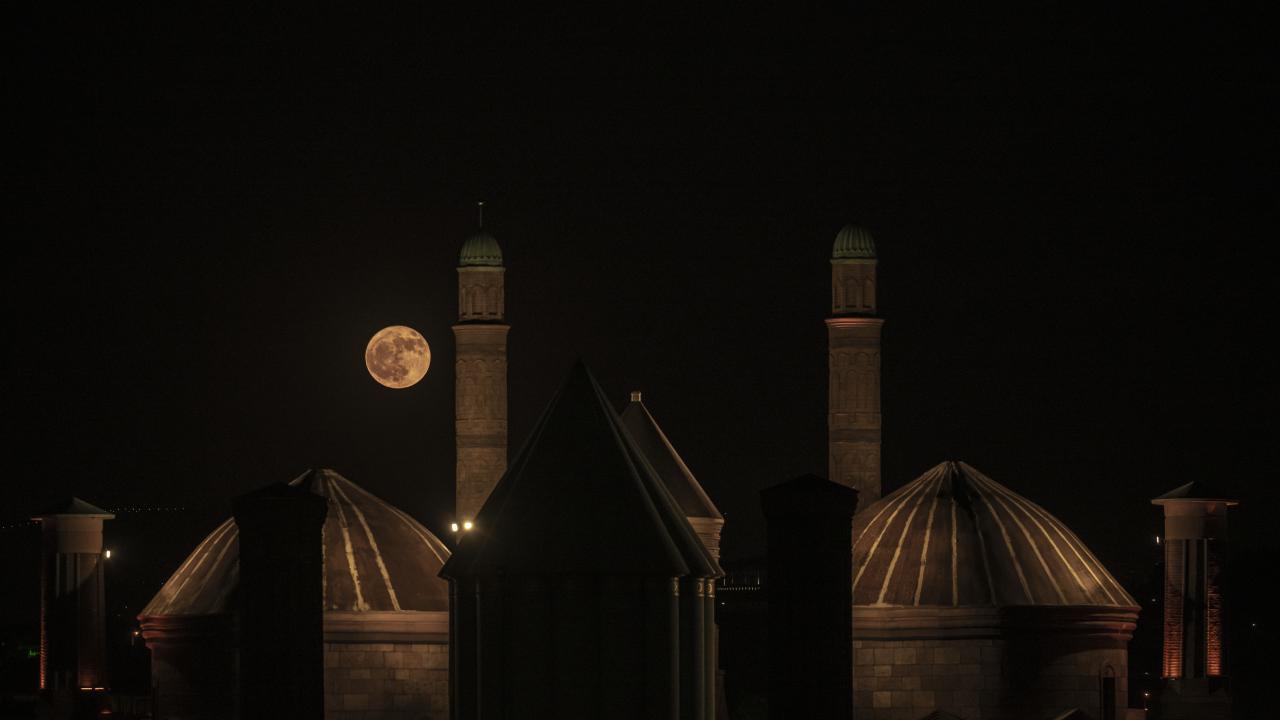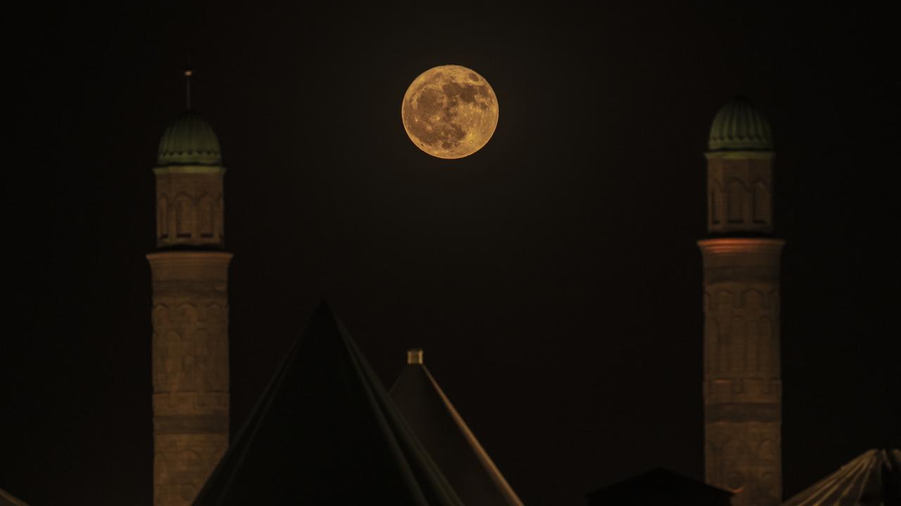Başkent Ankara'da akşam saatlerinde beliren dolunay, güzel görüntü oluşturdu.