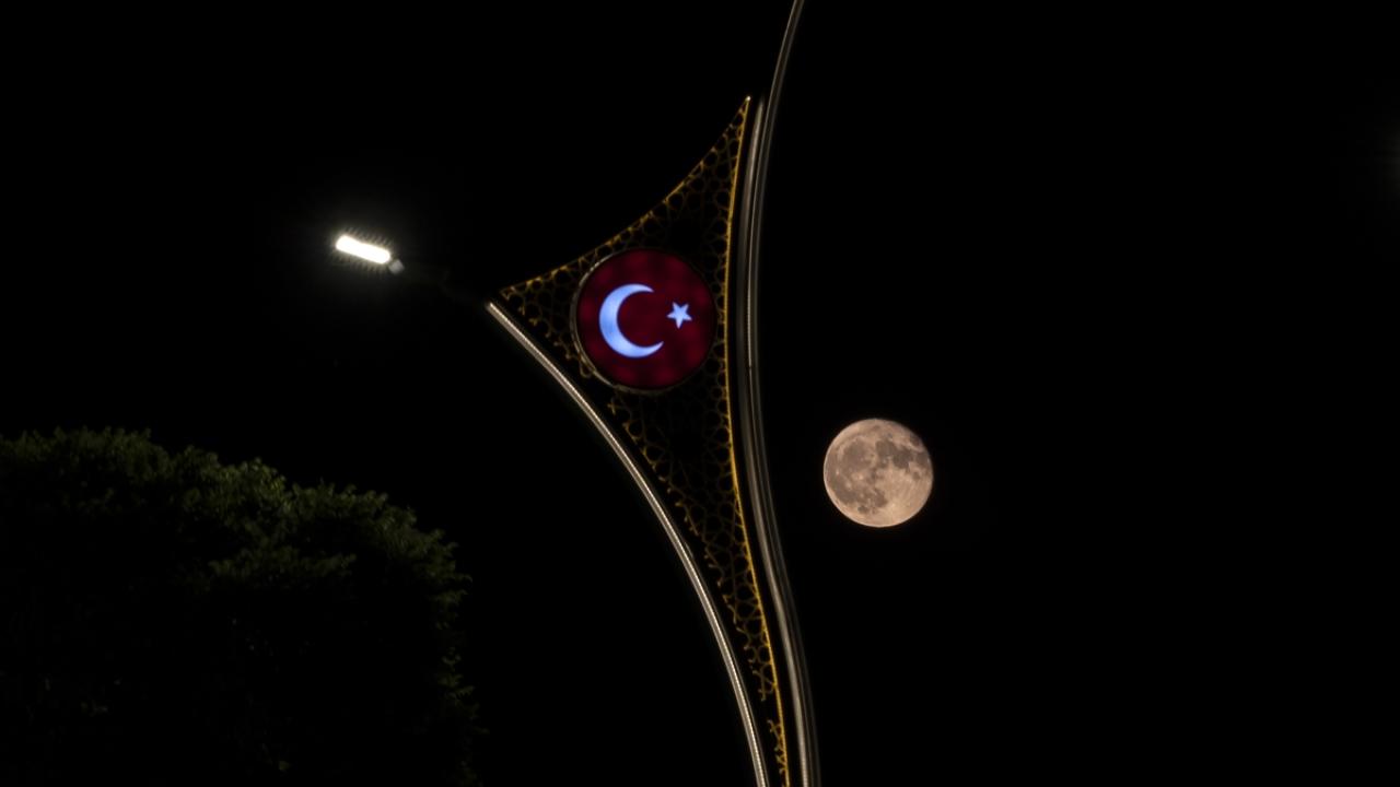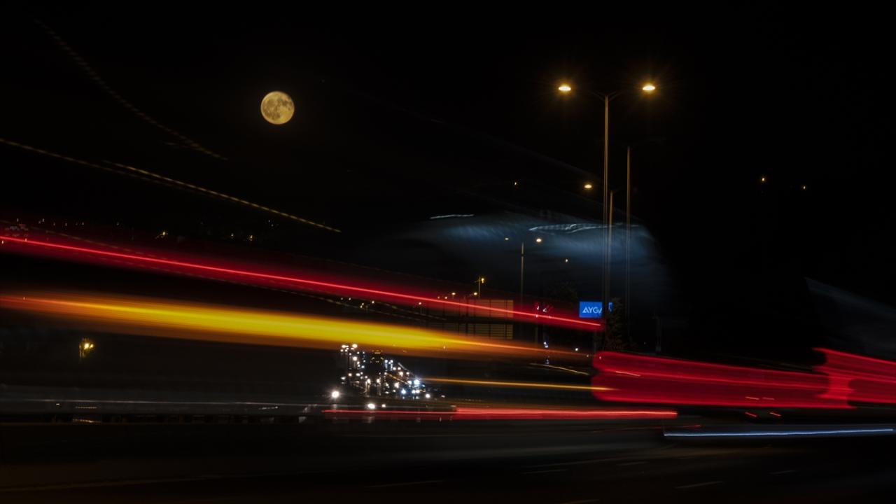 Gökyüzünde parlaklığıyla göz kamaştıran dolunay, kartpostallık görüntüler oluşturdu.