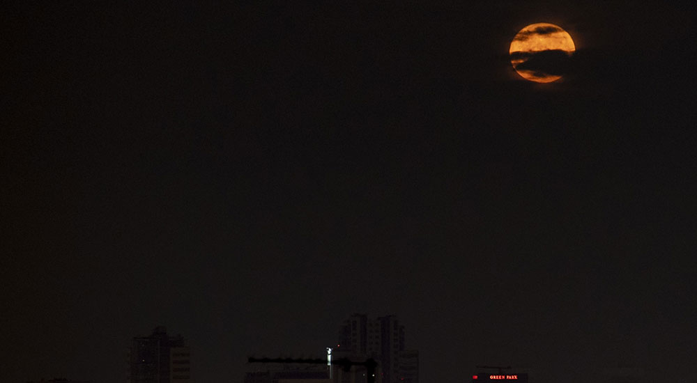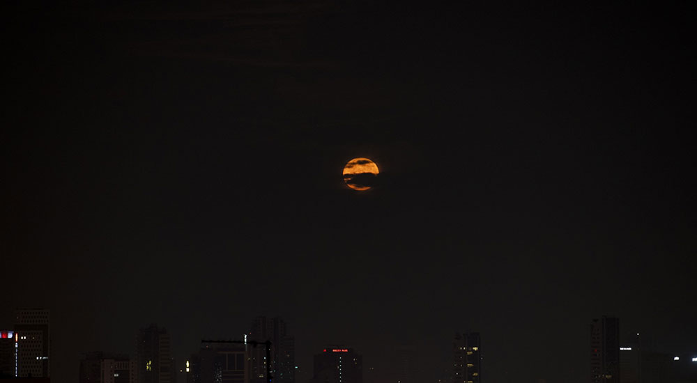 Ankara'da akşam saatlerinde beliren dolunay güzel görüntüler oluşturdu.