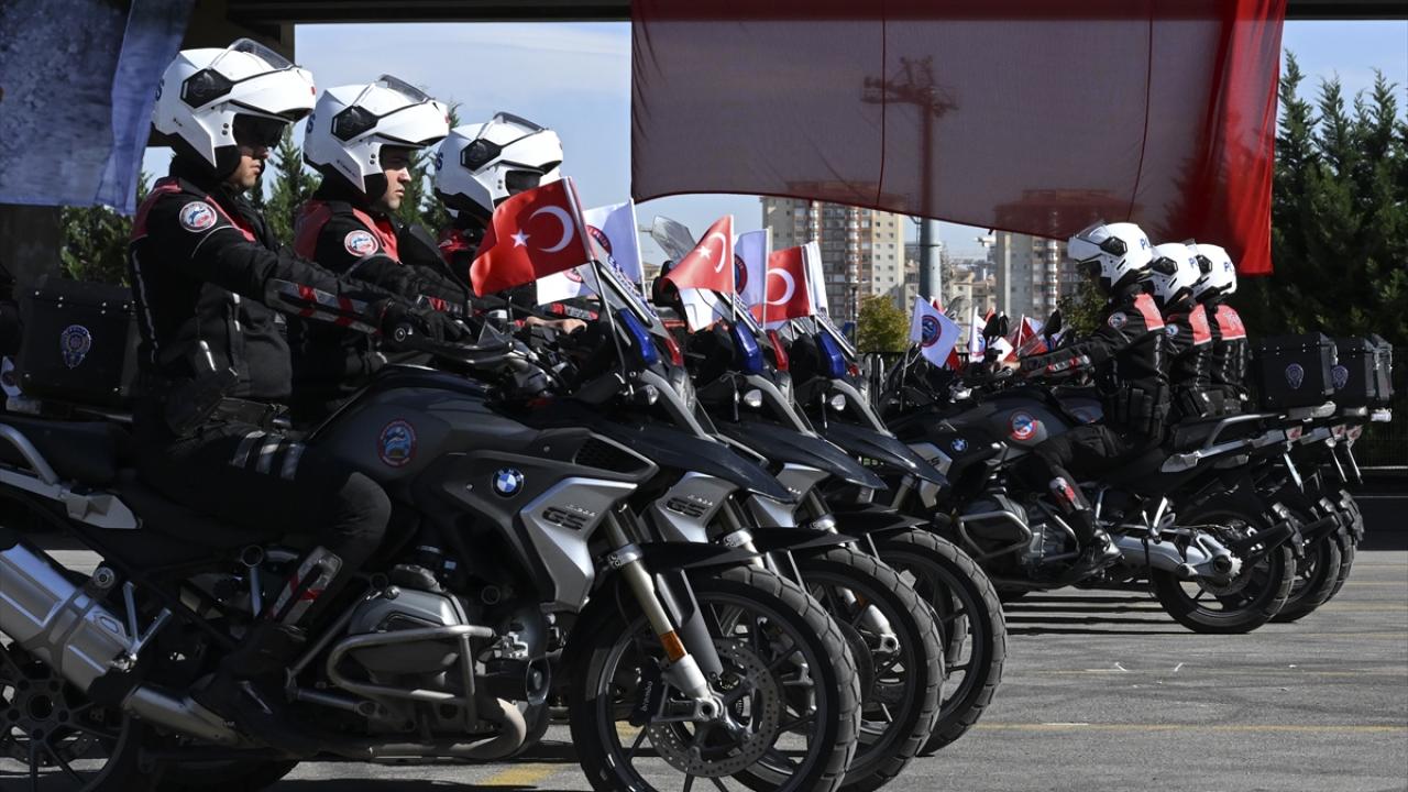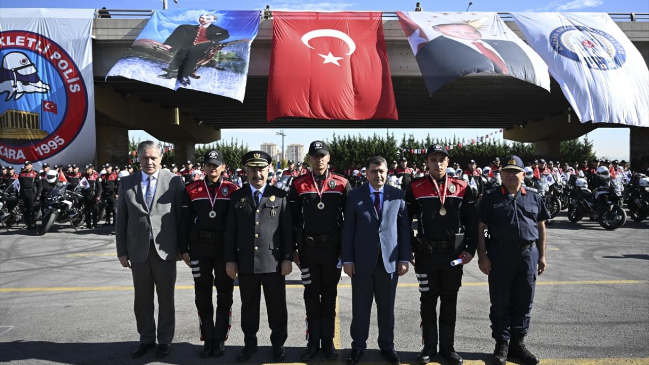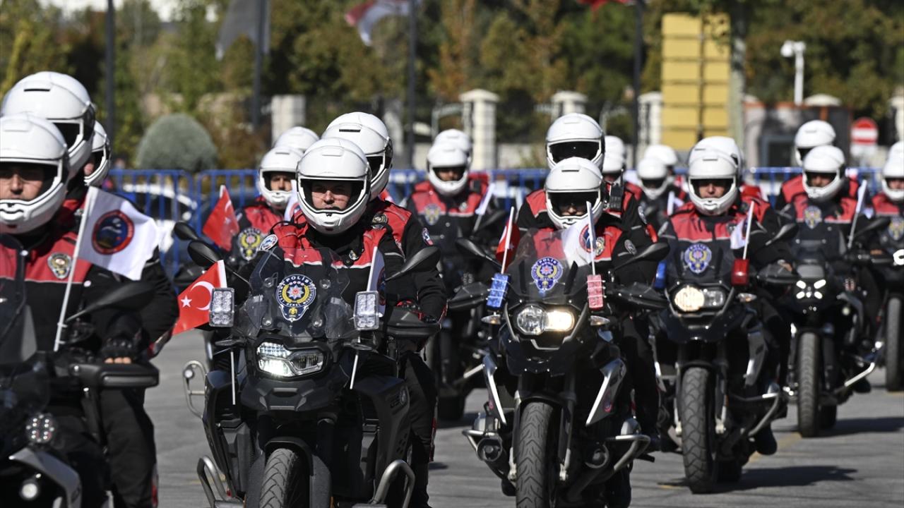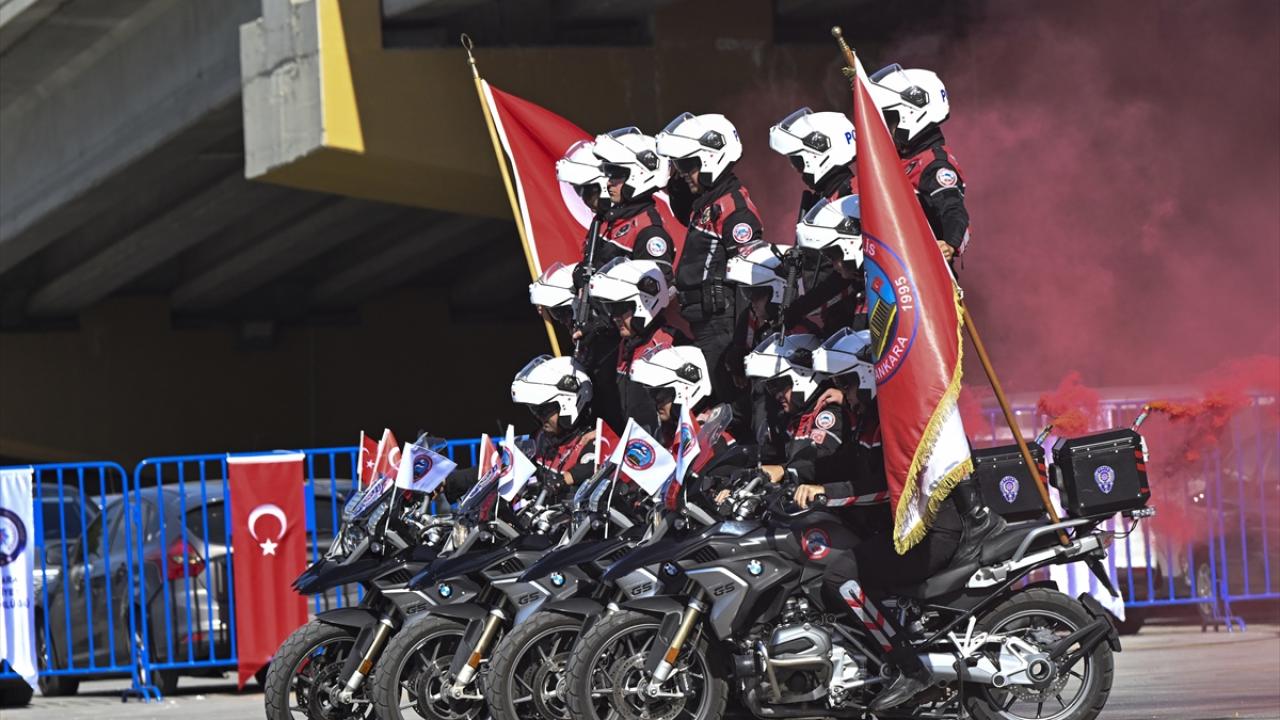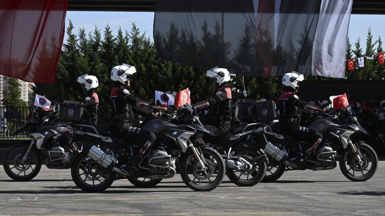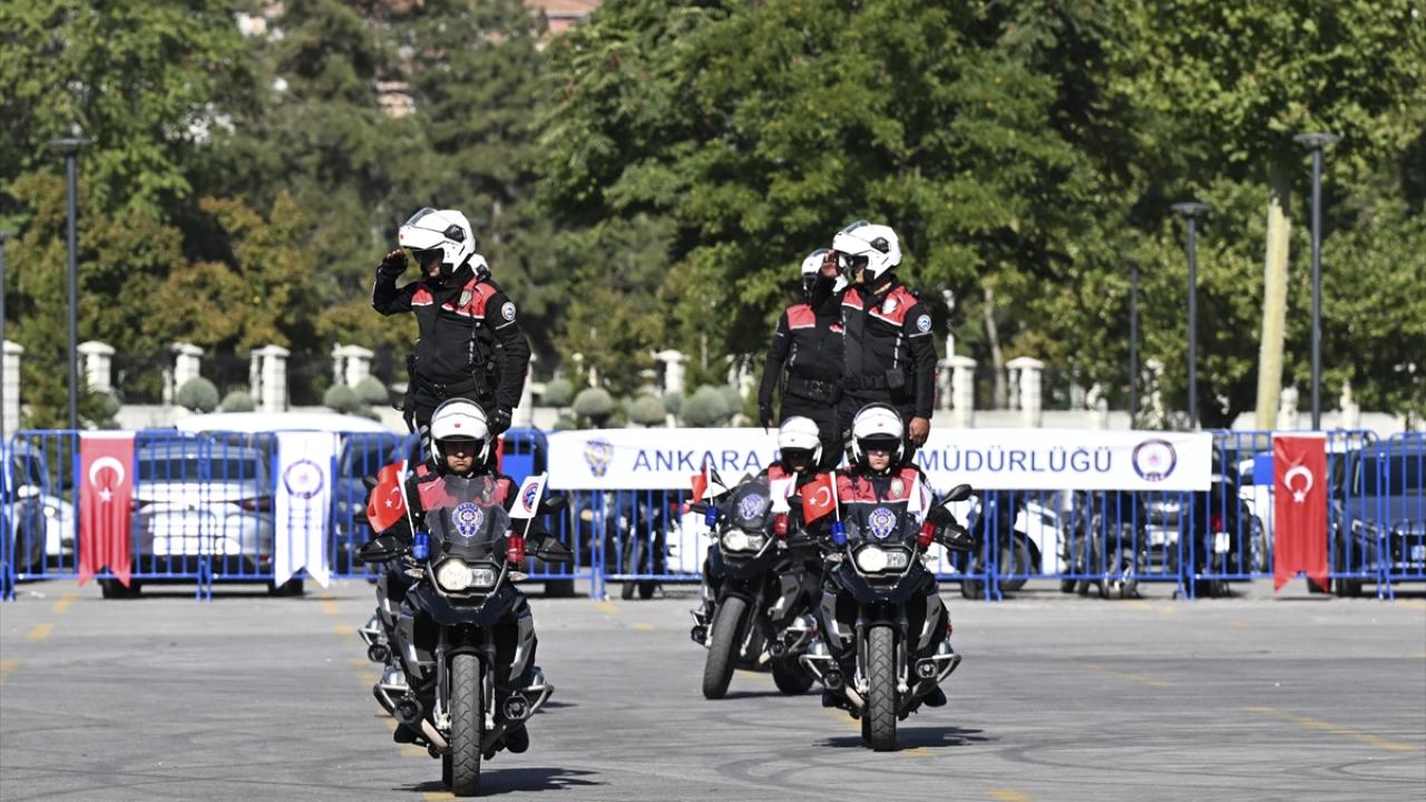 Ankara Emniyet Müdürlüğü Asayiş Şube Müdürlüğüne bağlı Motosikletli Polis Timler Amirliğinde temel eğitim kursu alan 7'si kadın 85 yunus polisi için mezuniyet töreni düzenlendi.