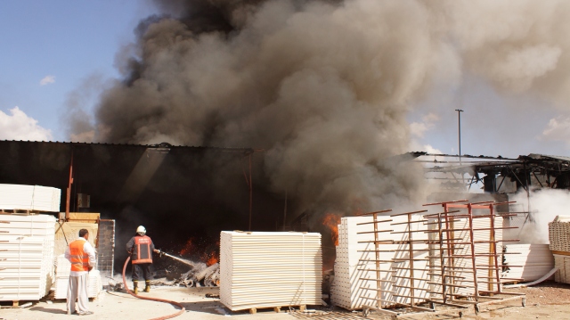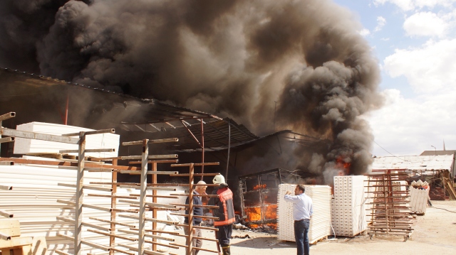 Ankara'nın Çubuk ilçesinde, dış cephe ısı yalıtım malzemesi imal eden fabrikanın deposunda çıkan yangın maddi hasara neden oldu.