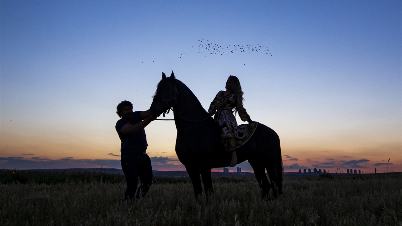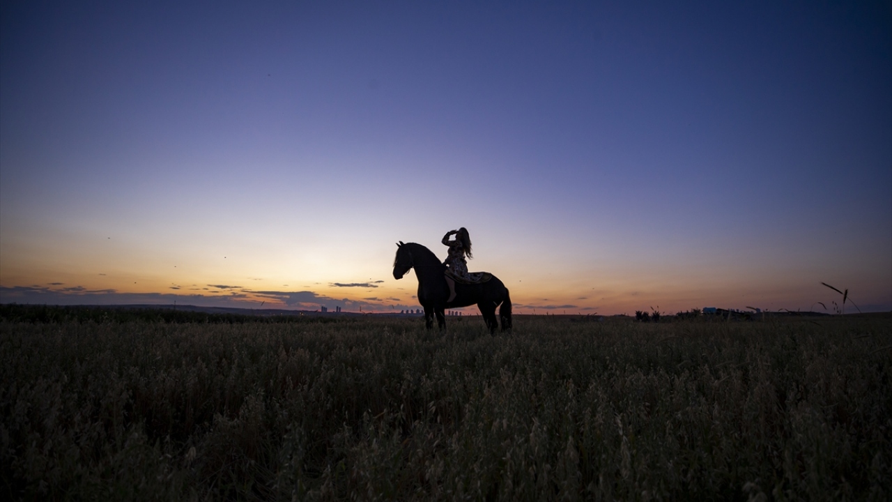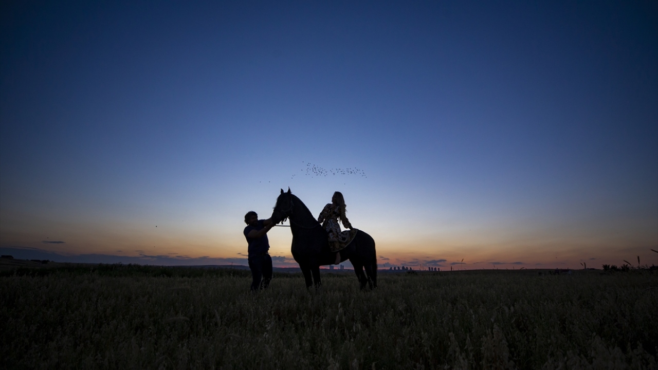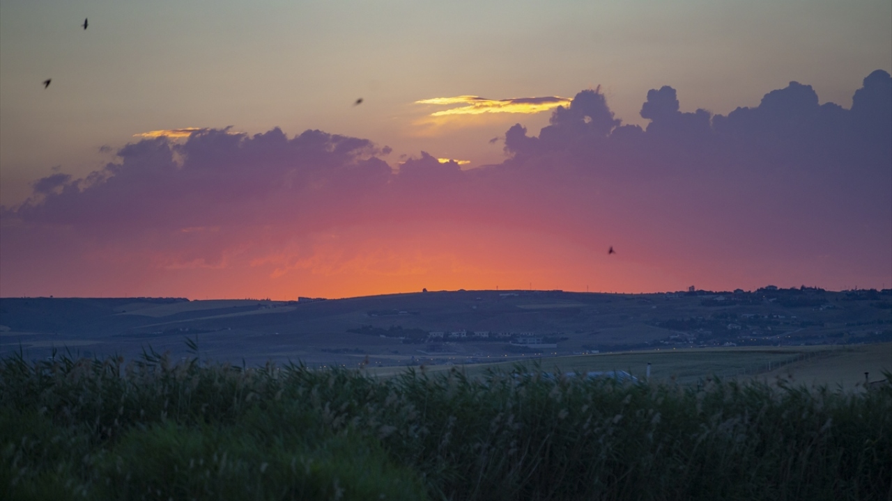Ankara'nın Gölbaşı ilçesi civarında gün batımında güzel görüntüler oluştu.