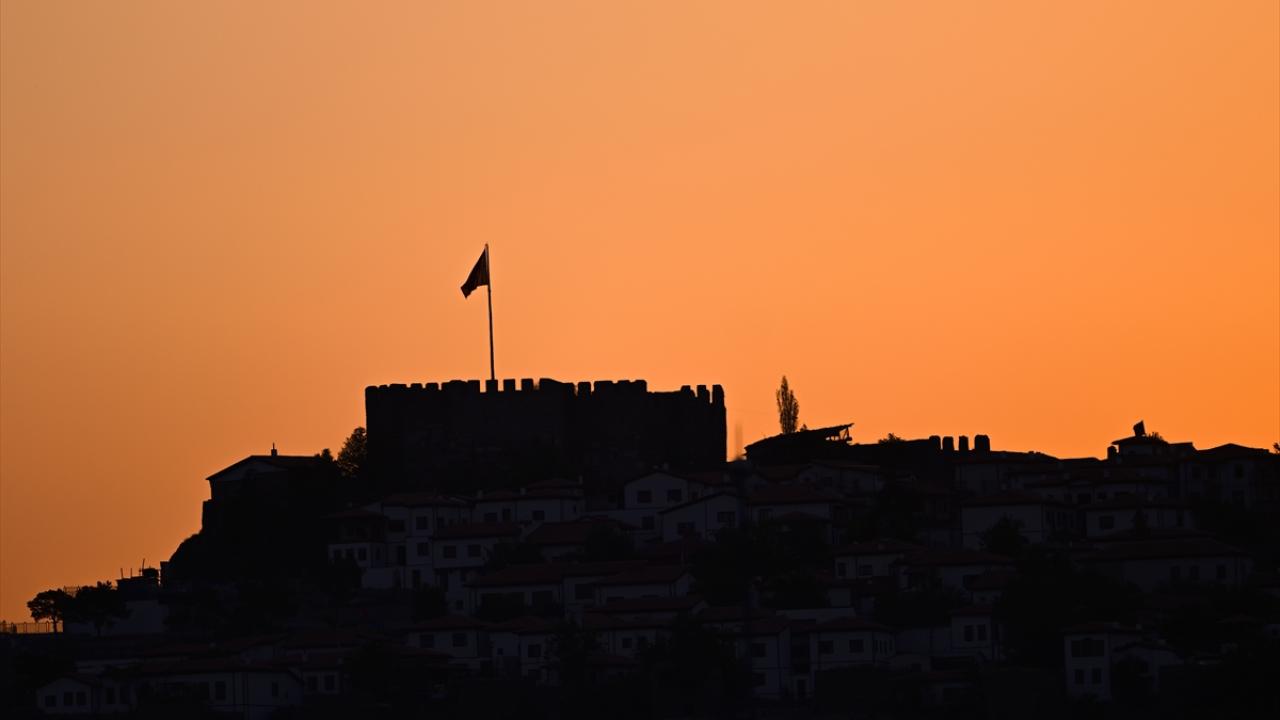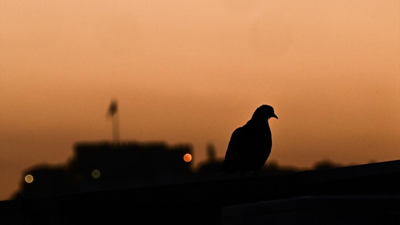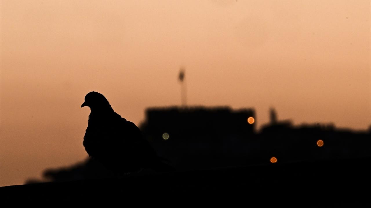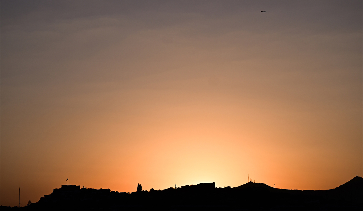 Ankara'da gün doğumunda gökyüzünde oluşan kızıllık ve Ankara Kalesi, güzel görüntü oluşturdu.