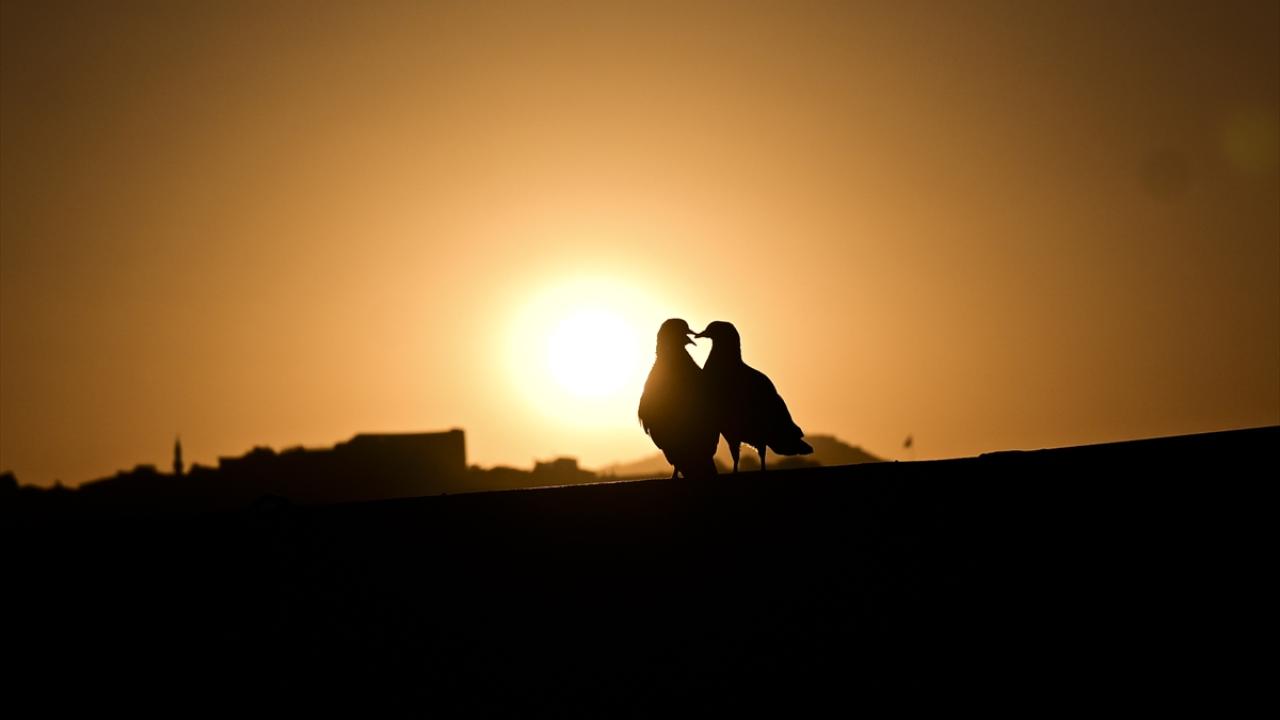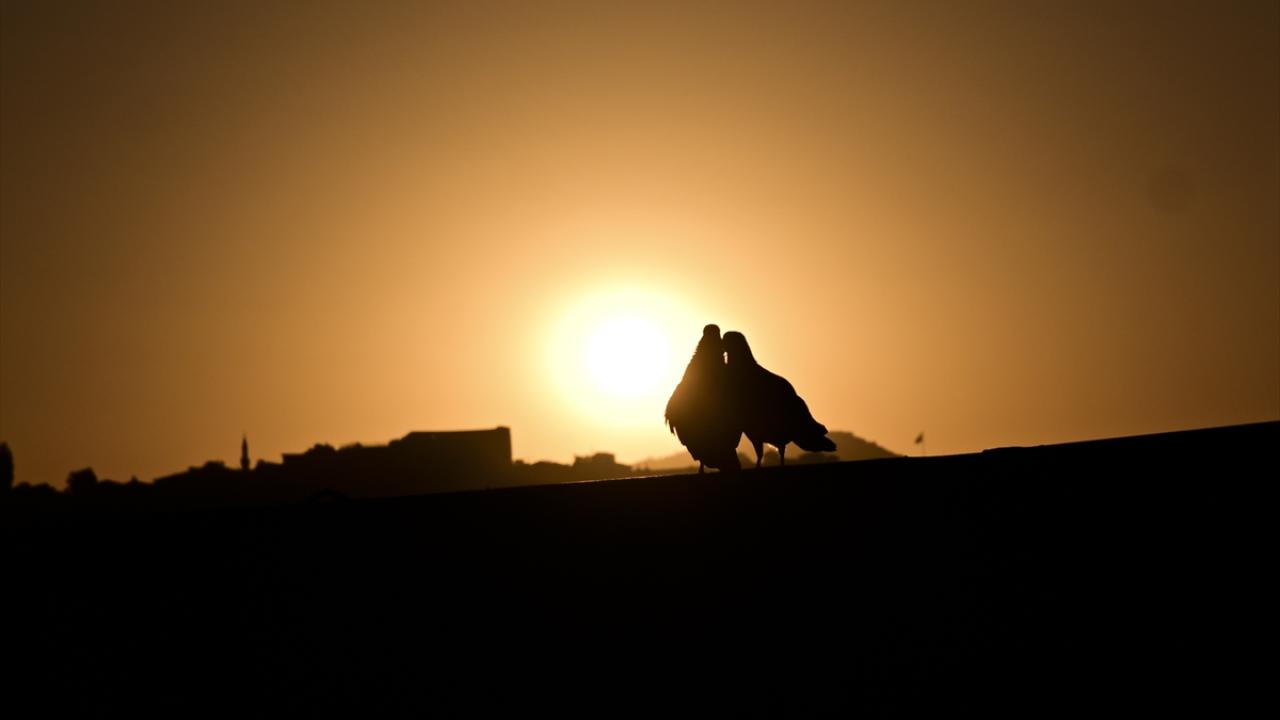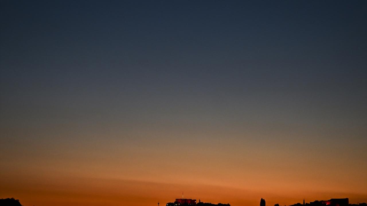 Ankara'da gün doğumunda gökyüzünde oluşan kızıllık ve Ankara Kalesi, güzel görüntü oluşturdu.