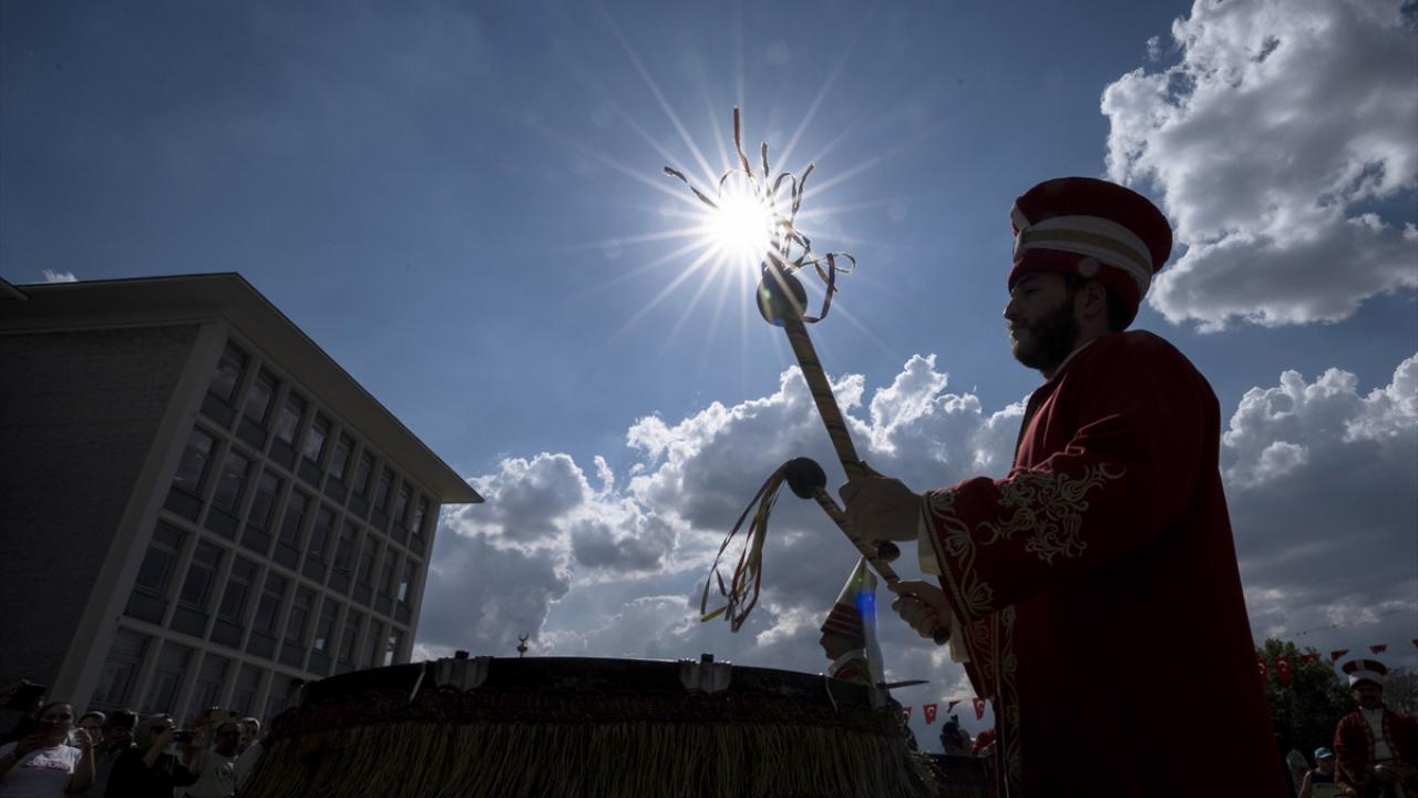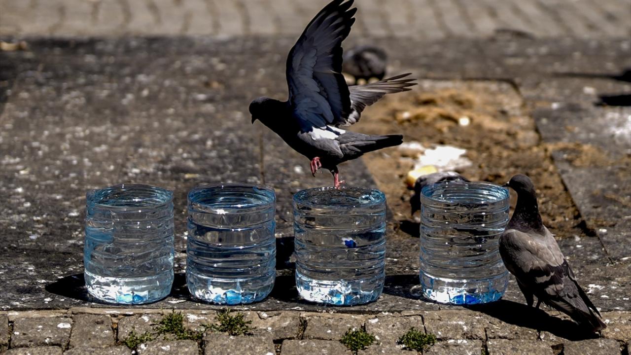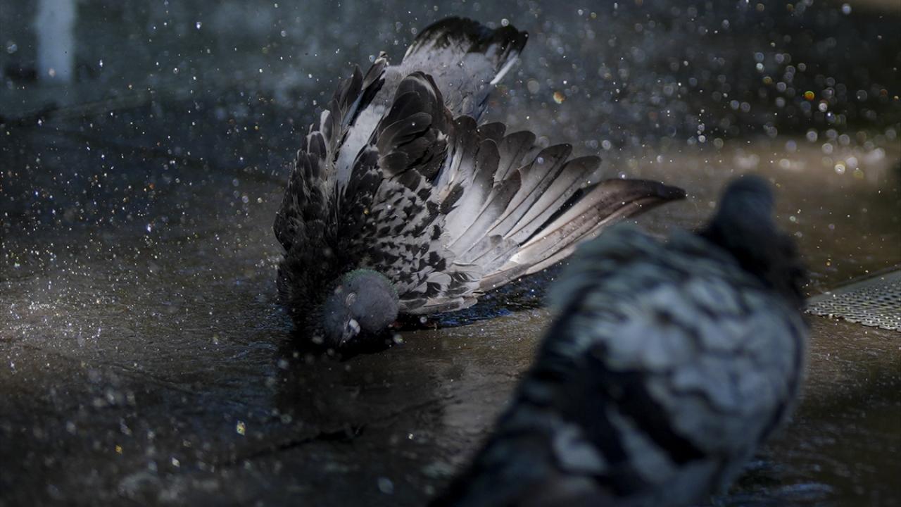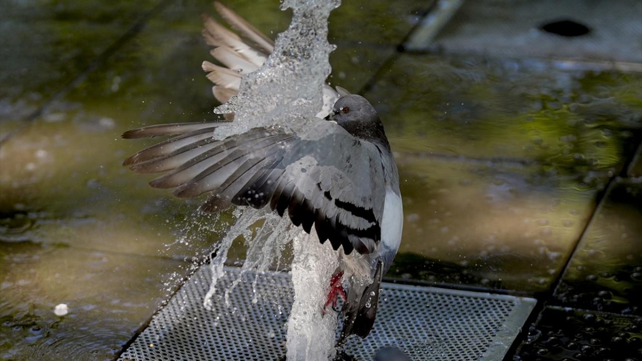 Başkent Ankara`da sıcaktan etkilenen güvercinler, Kuğulu Park`taki havuzda ve fıskiyelerde serinlemeye çalıştı.
