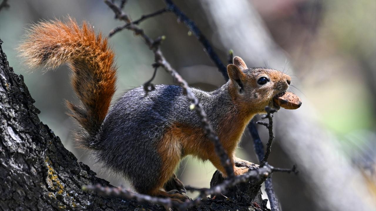 Başkent Ankaralıların uğrak yerlerinden biri olan Botanik Park'ta yaşayan sincapların gün içerisinde yuvalarından ayrılarak gezindikleri ve yiyecek aradıkları görüntülendi.