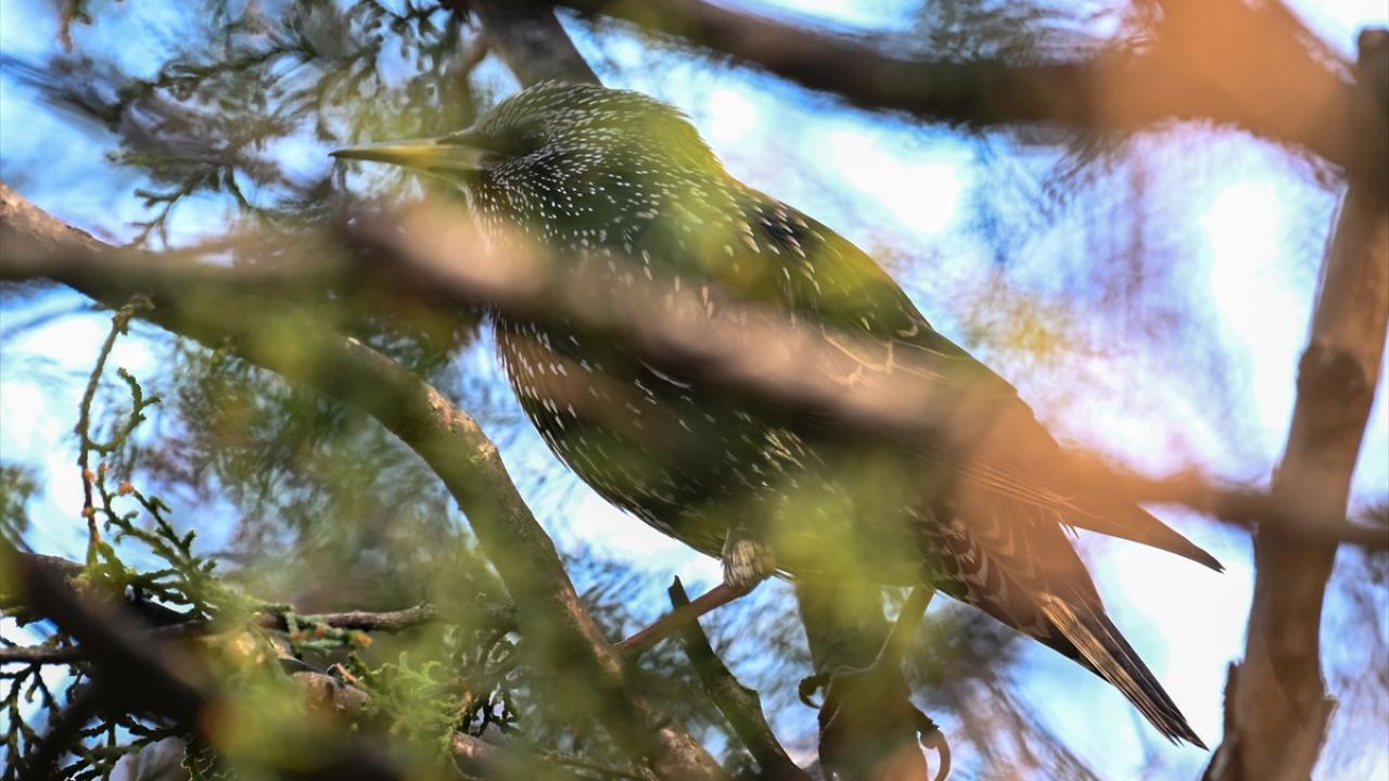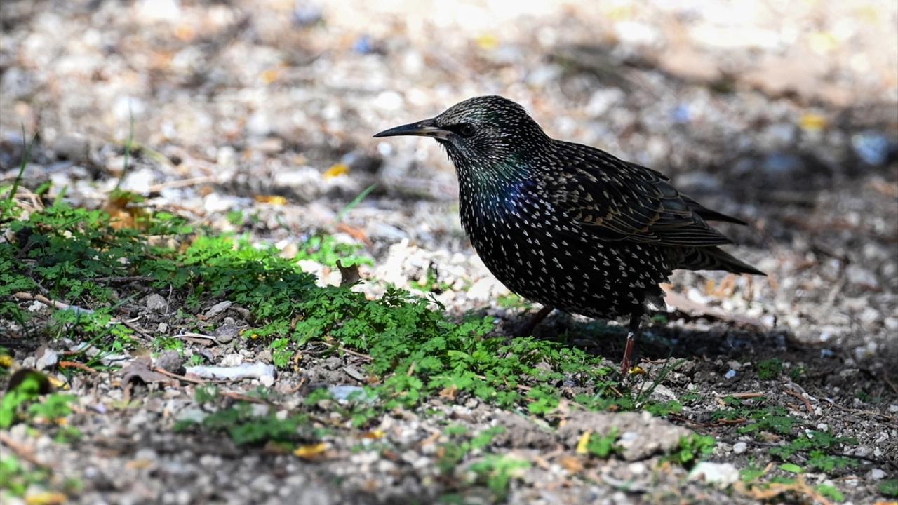 Seğmenler Parkı`nda yaşayan sığırcık kuşları, yiyecek ararken görüntülendi.