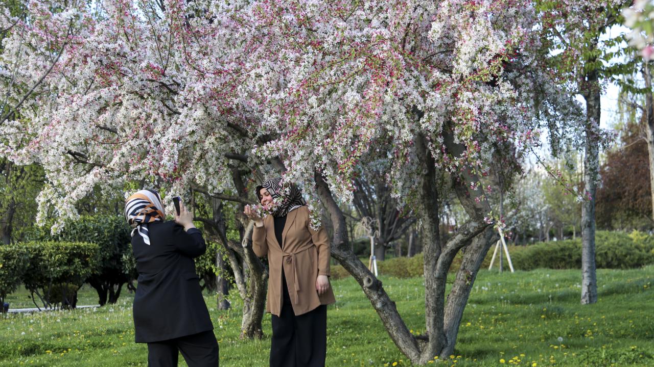Başkent Ankara'da ilkbaharın gelişiyle, ağaçlar çiçek açtı ve bitki örtüsü canlandı. Vatandaşlar Altınpark'ta yürüyüş yapıp baharın tadını çıkardı.