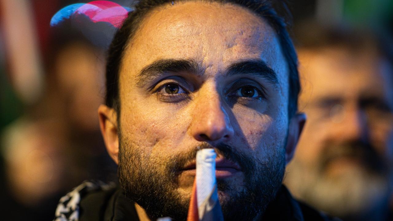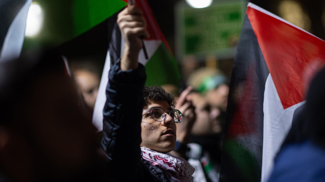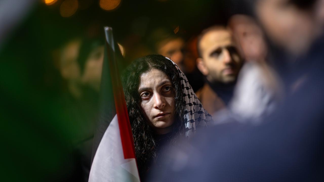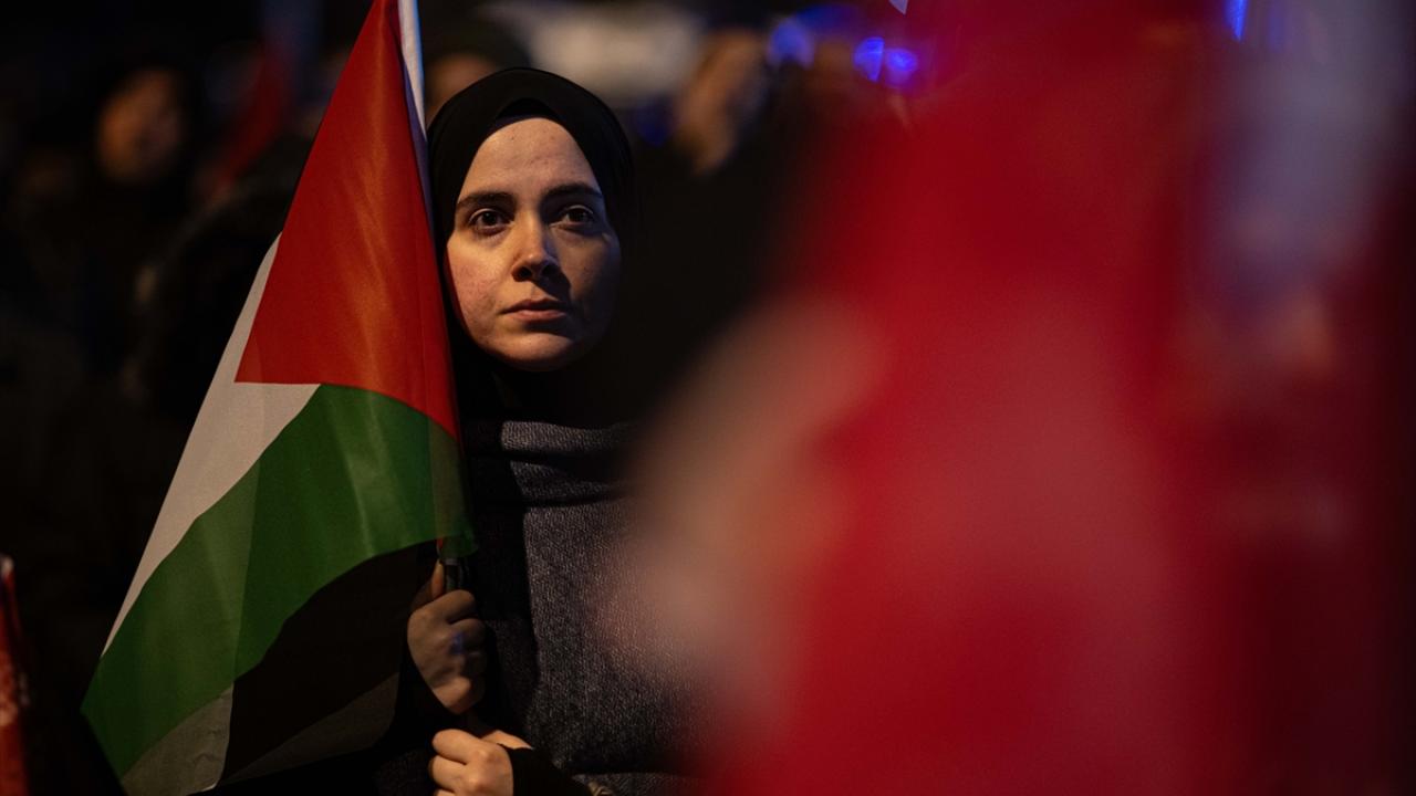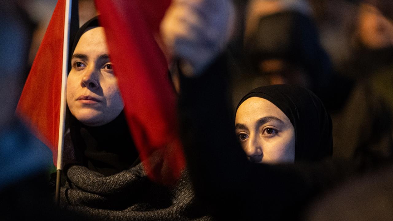 Ankara Filistin Dayanışma Platformu (ANFİDAP) üyeleri, Tuğba Altınok Camisi`nde kılınan teravih namazının ardından ellerinde "Soykırım devam ediyor", "Soykırımı durdurun" yazılı pankartlarla ABD`nin Ankara Büyükelçiliği önüne yürüdü.