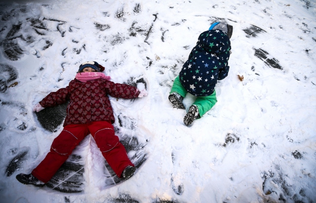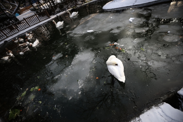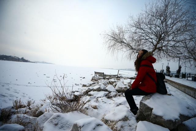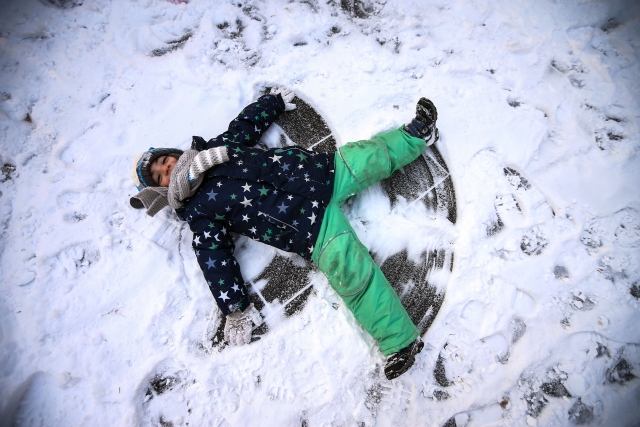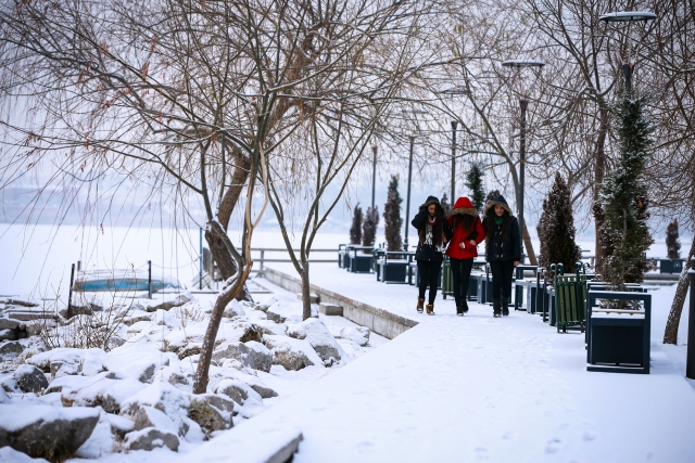 Ankara'da gece başlayan kar yağışının ardından kent beyaza büründü. Bazı çocuklar, Kuğulu Parka gelerek karın keyfini çıkardı.