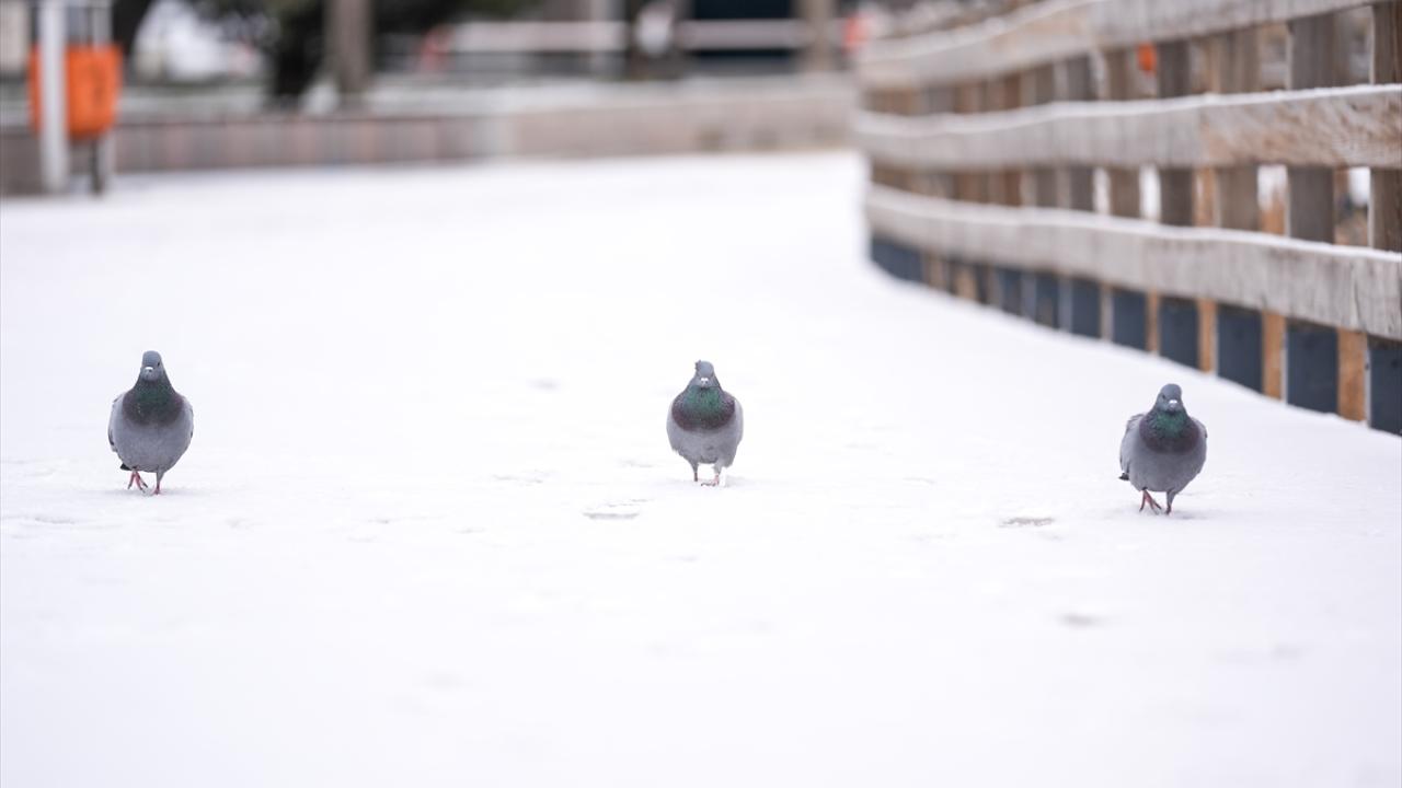 Yağışın ardından ilçede güzel görüntüler oluşurken, sokak hayvanları ve kuşlar yiyecek bulmakta zorlandı.