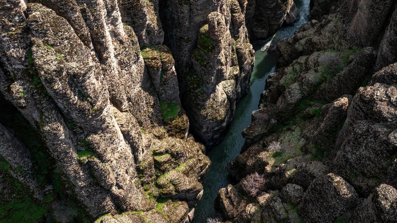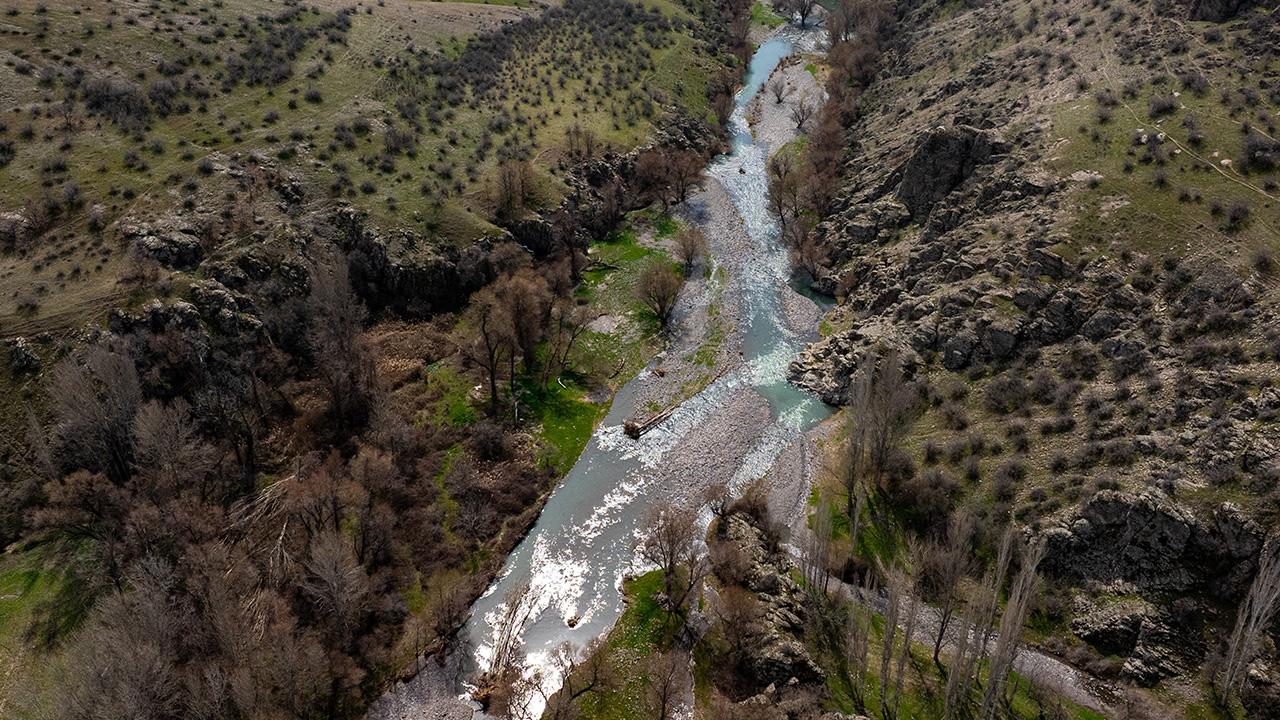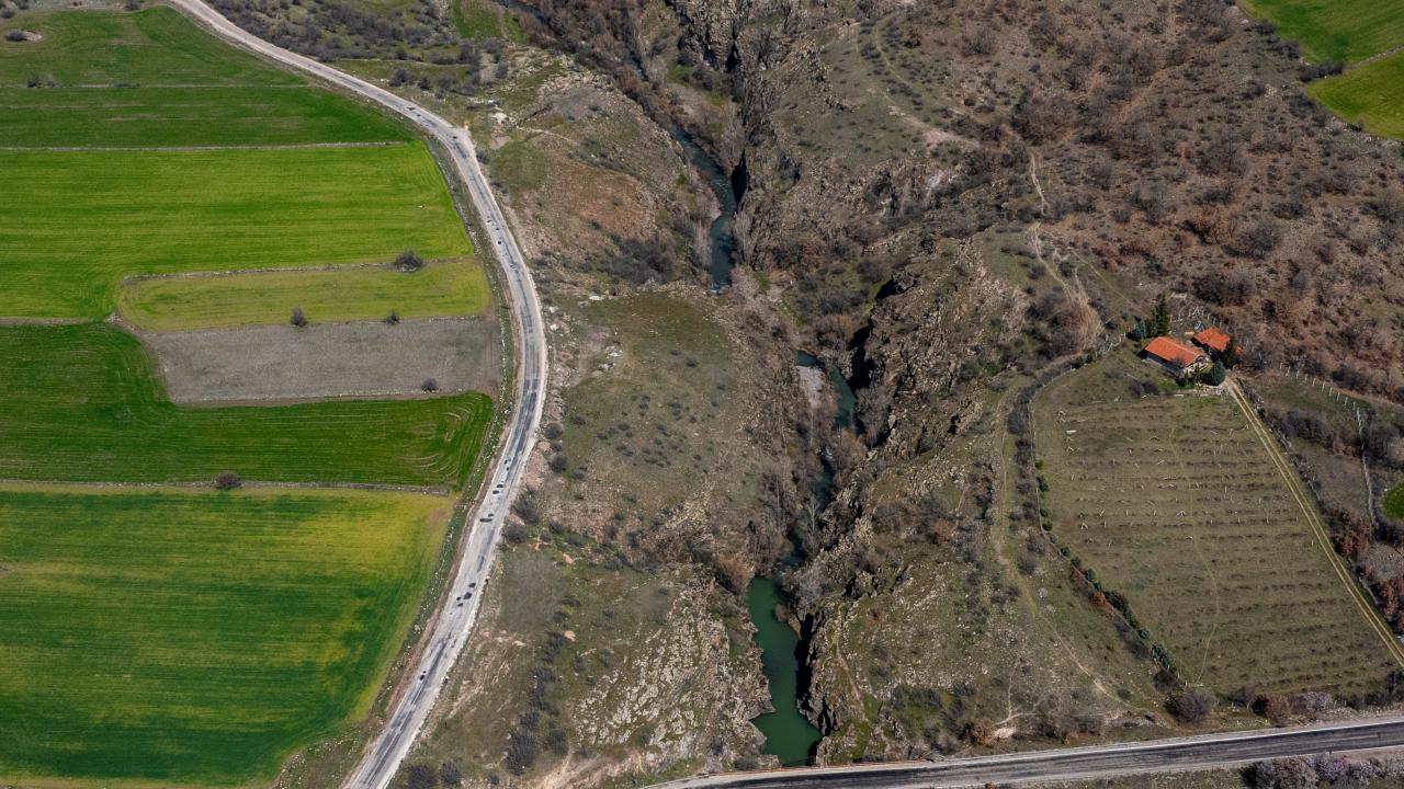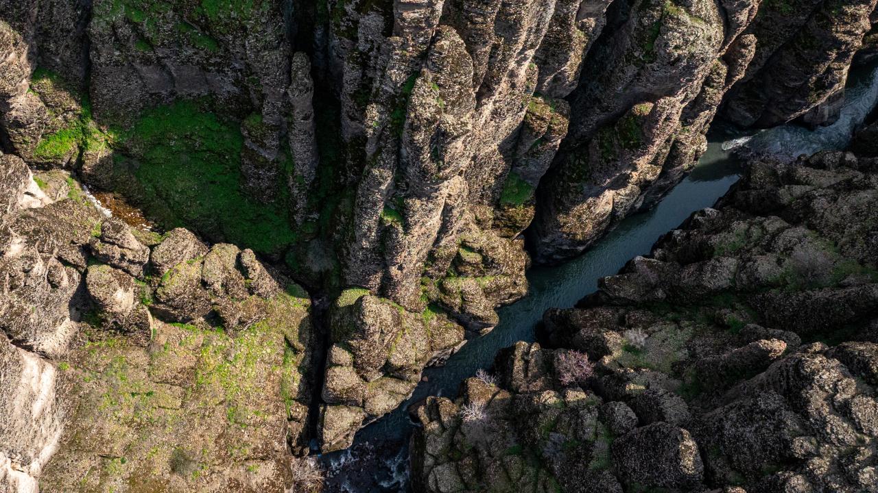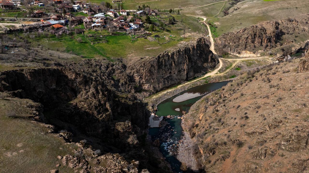 Ankara’nın Güdül ilçesinde bulunan Süvari Kanyonu, doğal yapısı ve etkileyici kaya oluşumlarıyla dikkat çekiyor. Özköy mevkiinde yer alan kanyon, su yatağı ve sarp kayalıklarıyla dron ile görüntülendi.