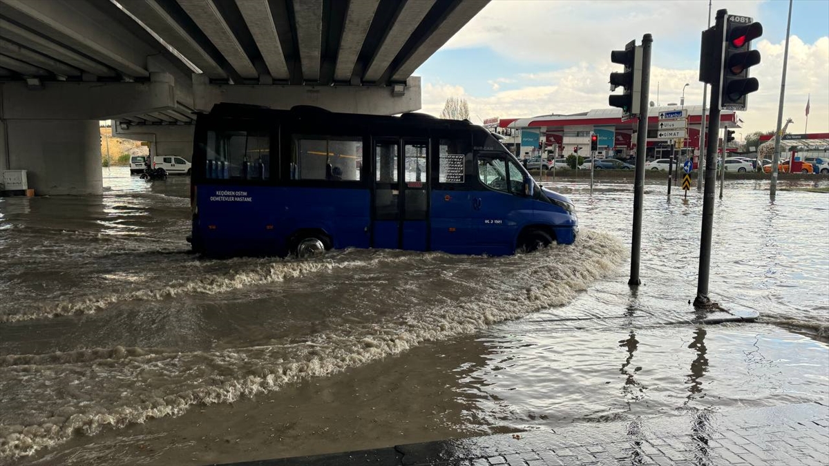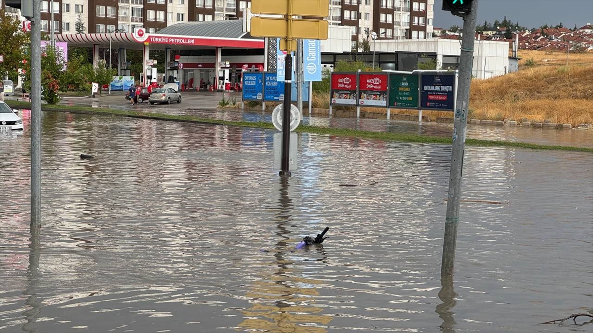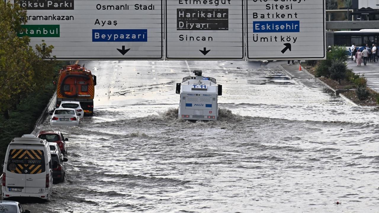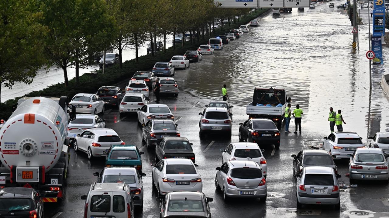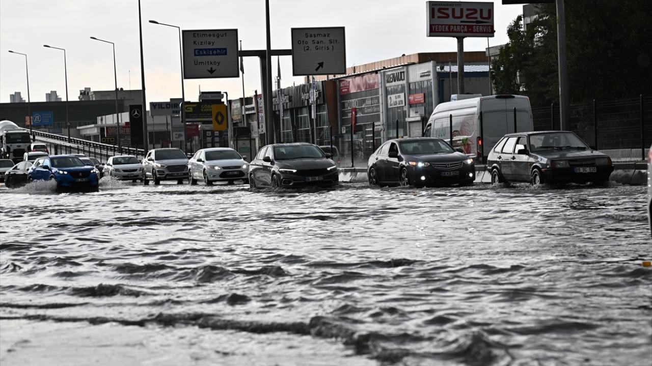Ankara'da etkili olan sağanak ve dolu yağışı nedeniyle cadde ile sokaklar göle döndü, iş yerlerini su bastı. Su altında kalan caddeler nedeniyle sürücüler trafikte ilerlemekte güçlük çekti.